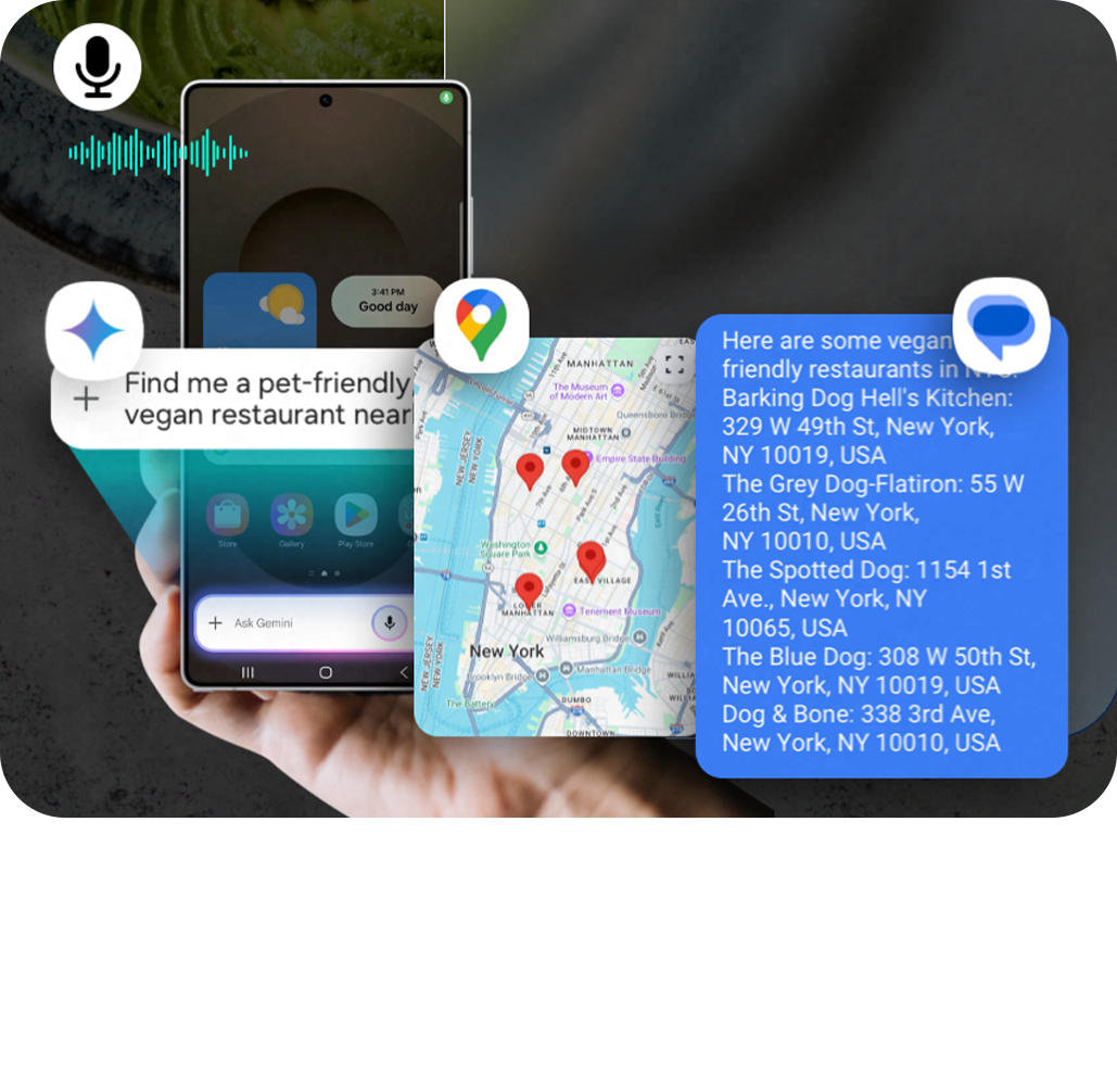 Với Galaxy S25 series, bạn có thể điều khiển điện thoại và ứng dụng bằng giọng nói một cách tự nhiên như trò chuyện với bạn bè. Thay vì thao tác bằng tay, bạn chỉ cần nói “Hey Google, bật đèn phòng khách”, “Hey Google, gọi cho vợ”, “Hey Google, mở YouTube Music và phát nhạc EDM” hay “Hey Google, đặt báo thức lúc 6 giờ sáng mai”. Hỗ trợ 45 ngôn ngữ, bao gồm tiếng Việt, Thực Hiện Tác Vụ Liên trên Galaxy S25 series mang đến trải nghiệm liền mạch, giúp bạn tương tác với điện thoại một cách thông minh và hiệu quả.