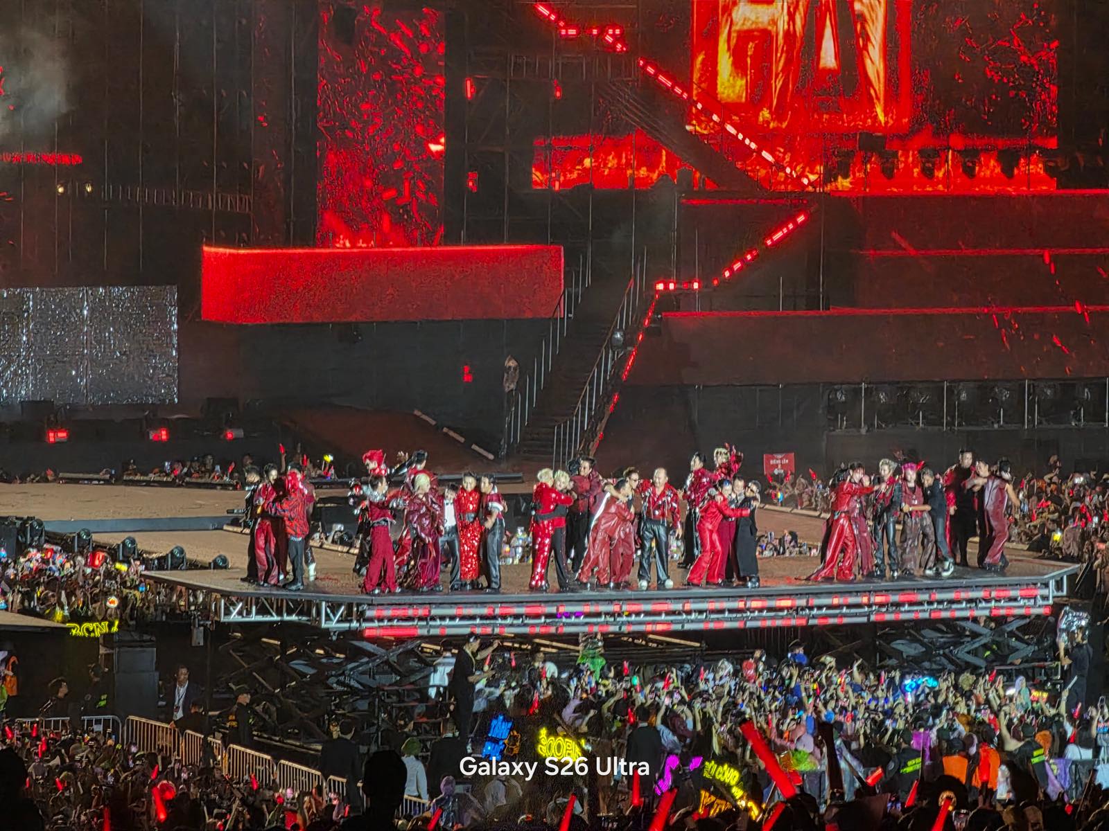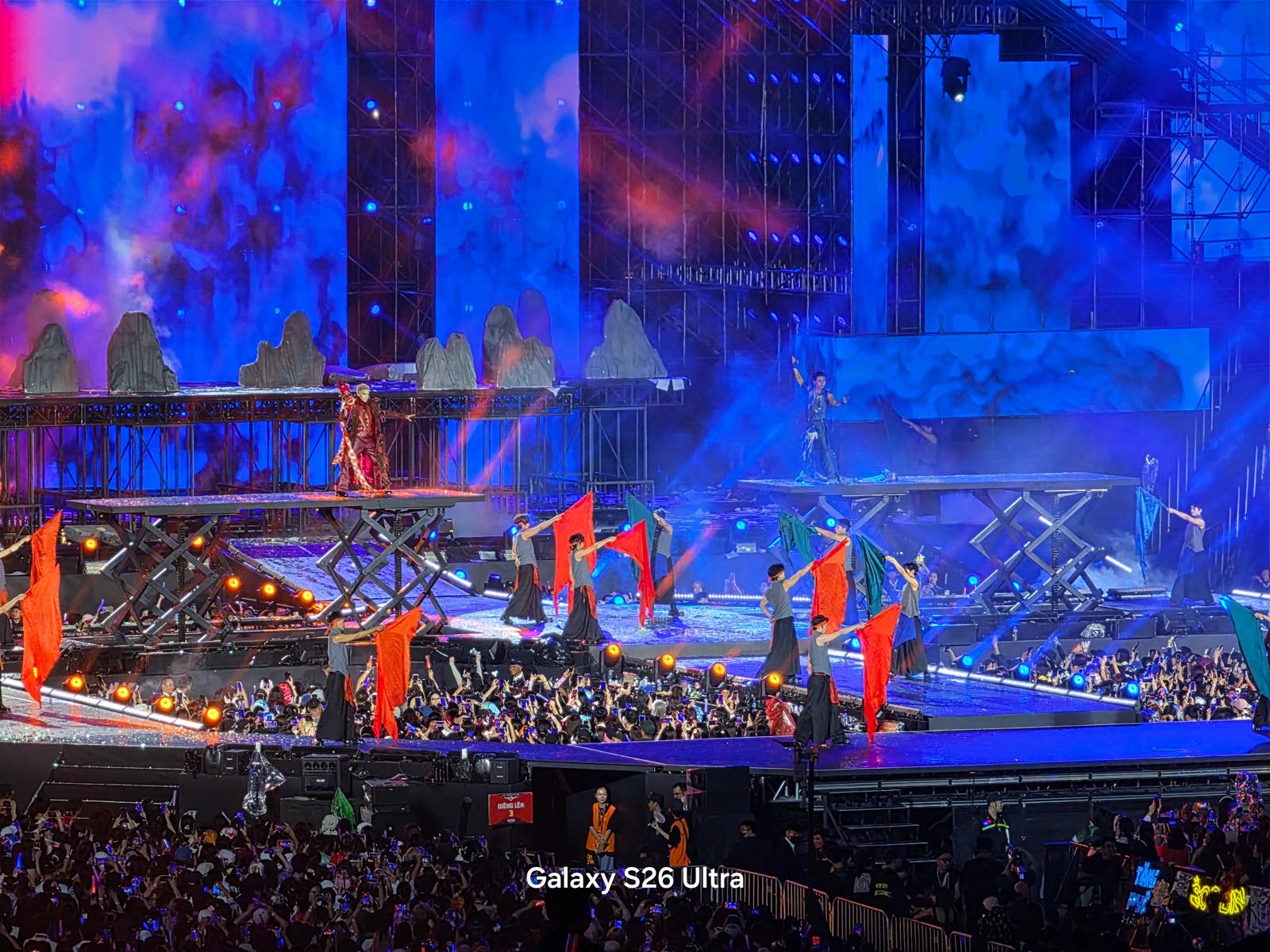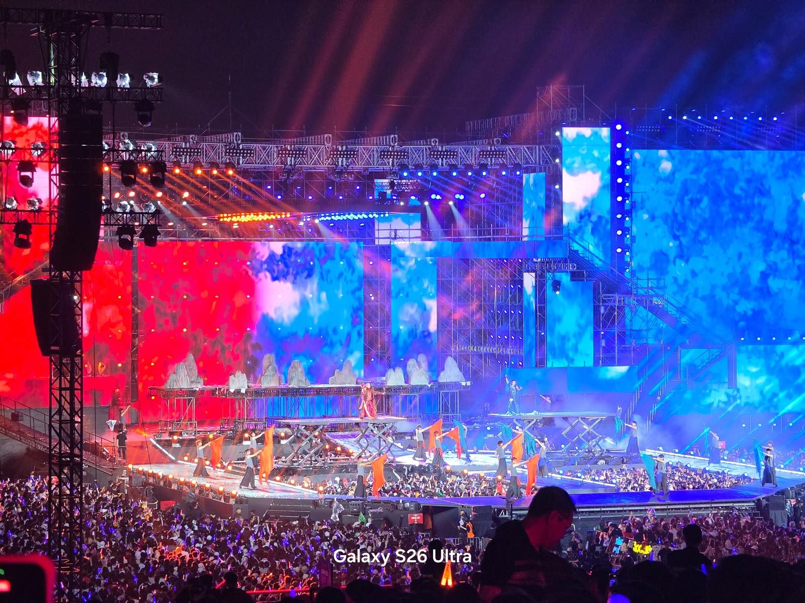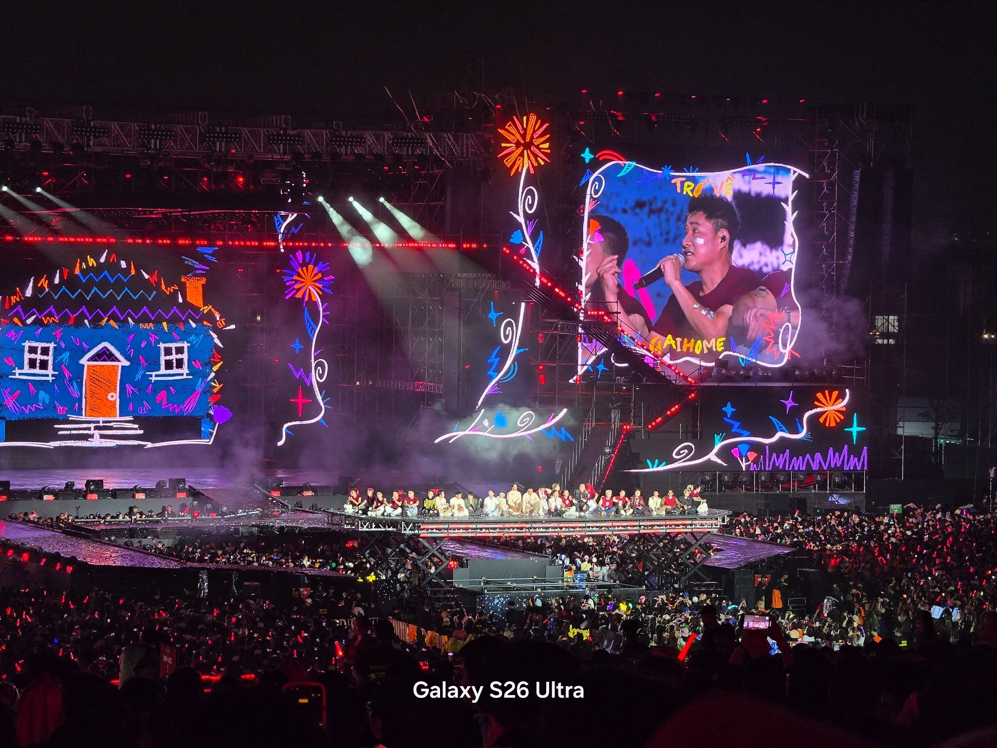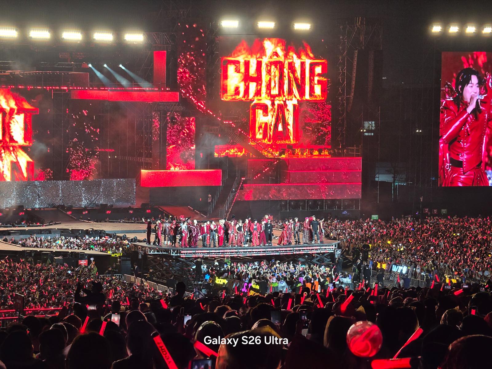 Trong phần lớn thời gian diễn ra concert, mình ưu tiên việc quay video để giữ lại không khí sôi động. Năm nay, camera chính của Galaxy S26 Ultra được tăng khẩu độ lên f/1.4, giúp thu nhận nhiều ánh sáng hơn đáng kể. Điều này vô cùng hữu dụng khi mình quay các tiết mục vào ban đêm.