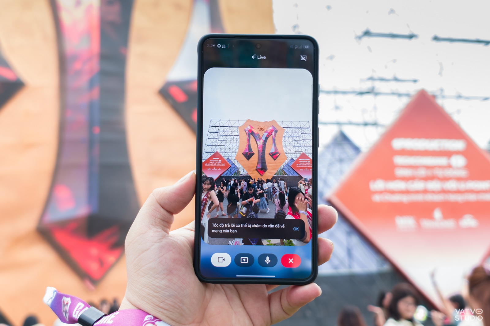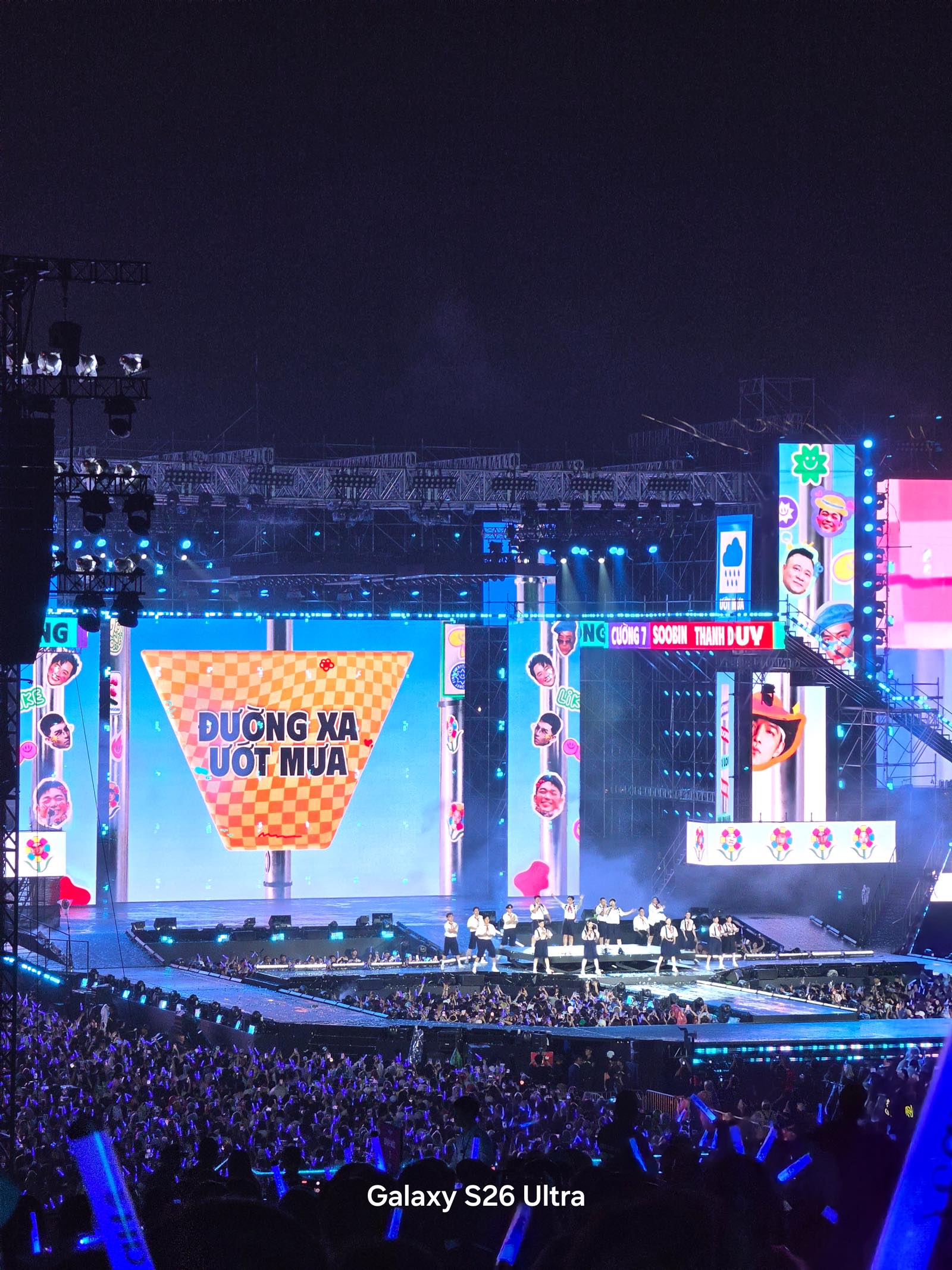 Đúng 6 giờ 30 chiều, ánh đèn sân khấu bừng sáng và Gai Home Concert chính thức bắt đầu trong tiếng hò reo của hàng vạn Gai Con. Khá đáng tiếc khi vị trí đứng của mình nằm ở khá xa, cách sân khấu khoảng 100 mét và còn vướng một chiếc cột âm thanh che chắn tầm nhìn. Tuy nhiên, đây lại là cơ hội để Galaxy S26 Ultra phô diễn sức mạnh của hệ thống camera telephoto đa dụng. Mình hoàn toàn tin tưởng vào khả năng thu phóng và tối ưu hóa video của thiết bị này để vượt qua trở ngại về khoảng cách.