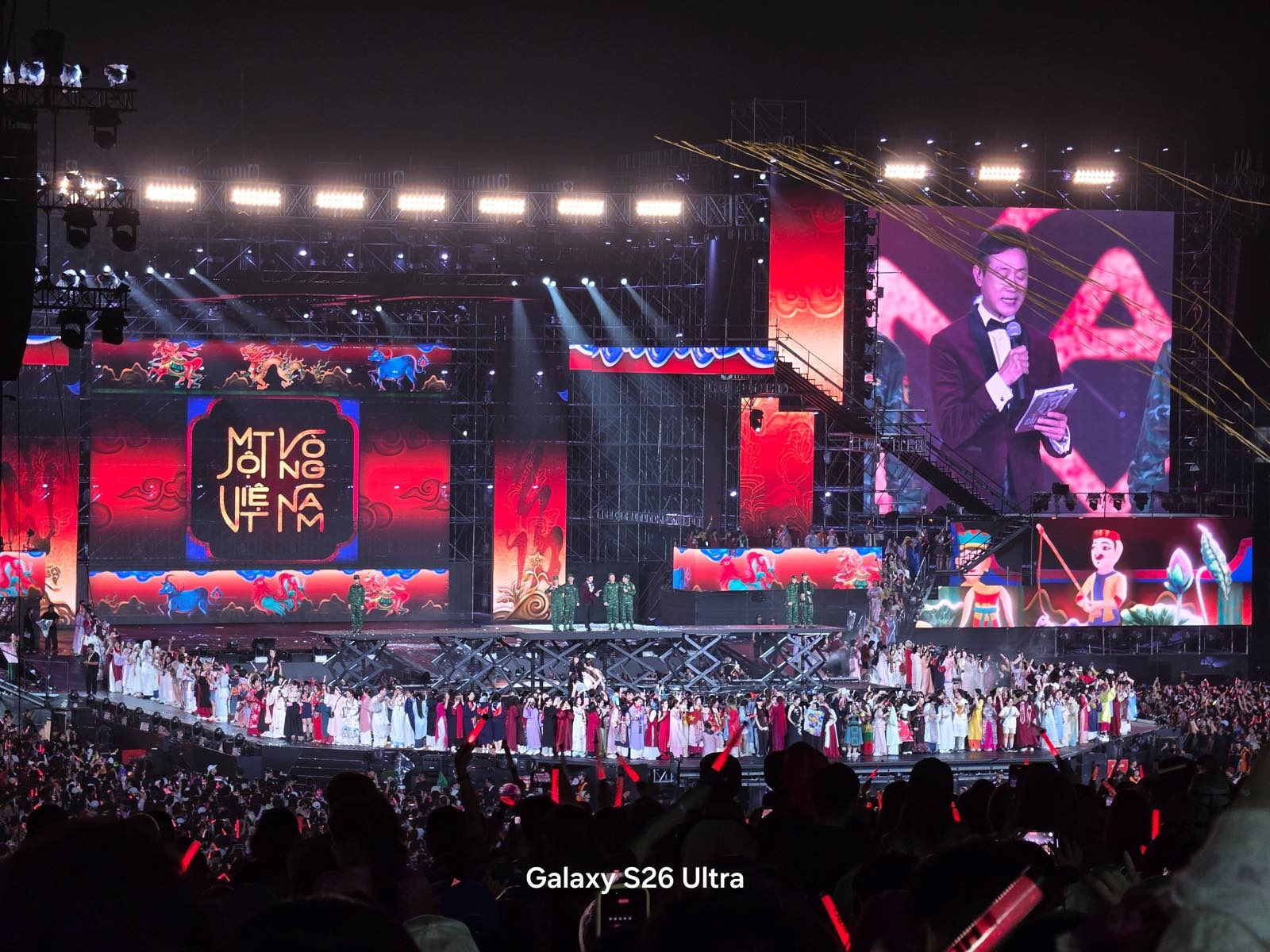 Tiết mục “Một vòng Việt Nam” là một trong những giây phút lắng đọng nhất của chương trình. Những bạn trẻ mặc Việt phục được mời lên sân khấu tạo thành một vòng tay lớn, biểu trưng cho sự đoàn kết. Galaxy S26 Ultra đã giúp mình ghi lại bức ảnh 5X cực kỳ chất lượng, bắt trọn những nụ cười và sự tự hào của mọi người, lưu giữ vẹn nguyên cảm xúc thiêng liêng của tiết mục này.