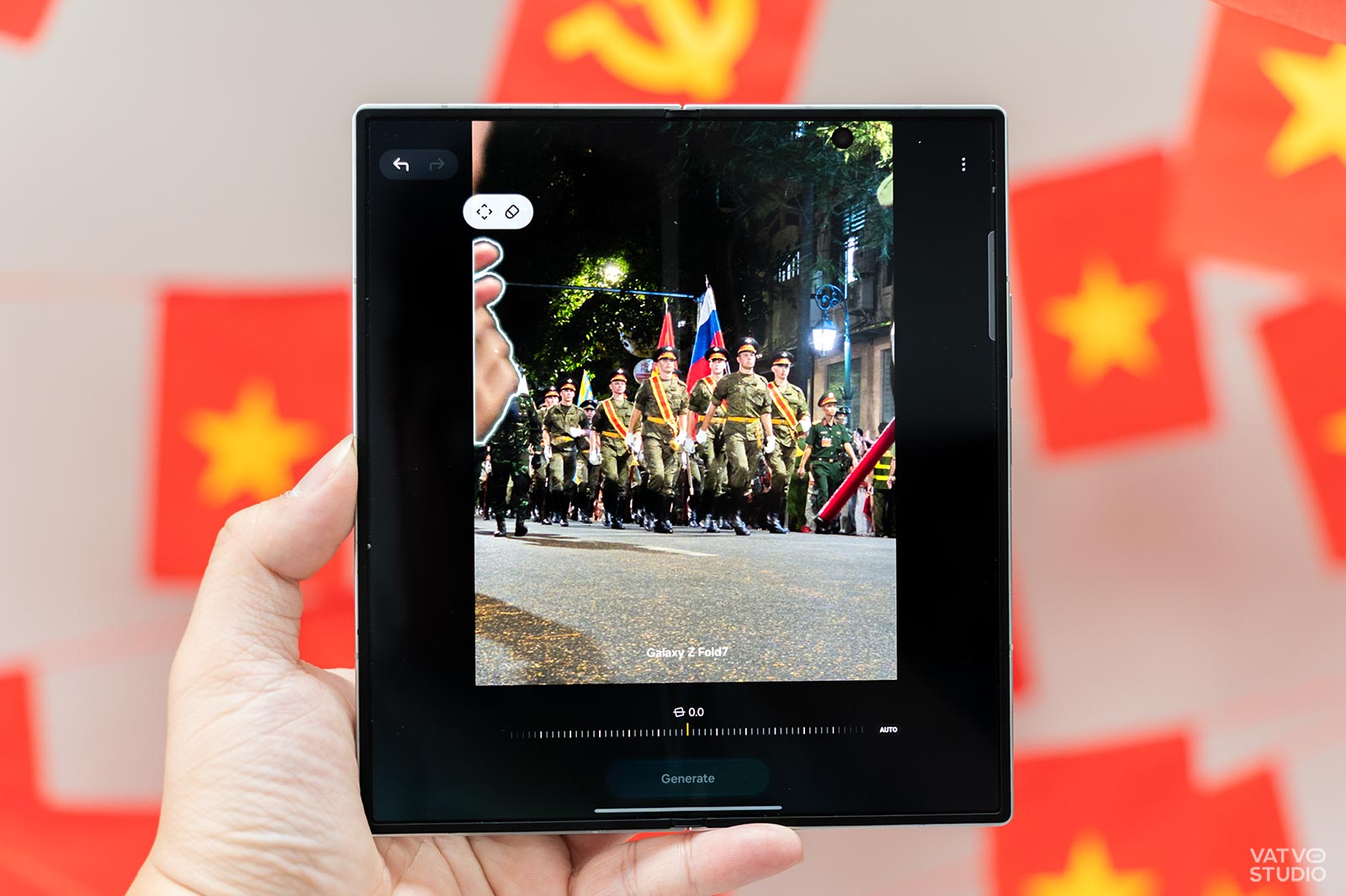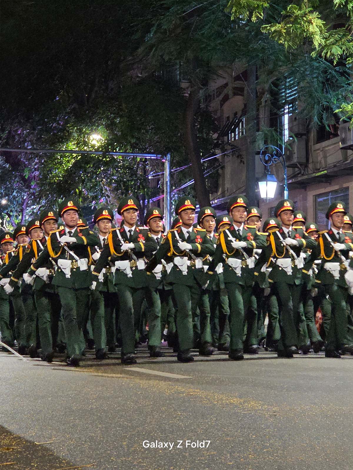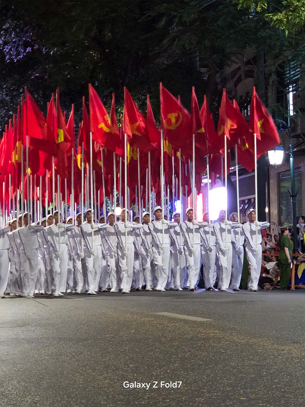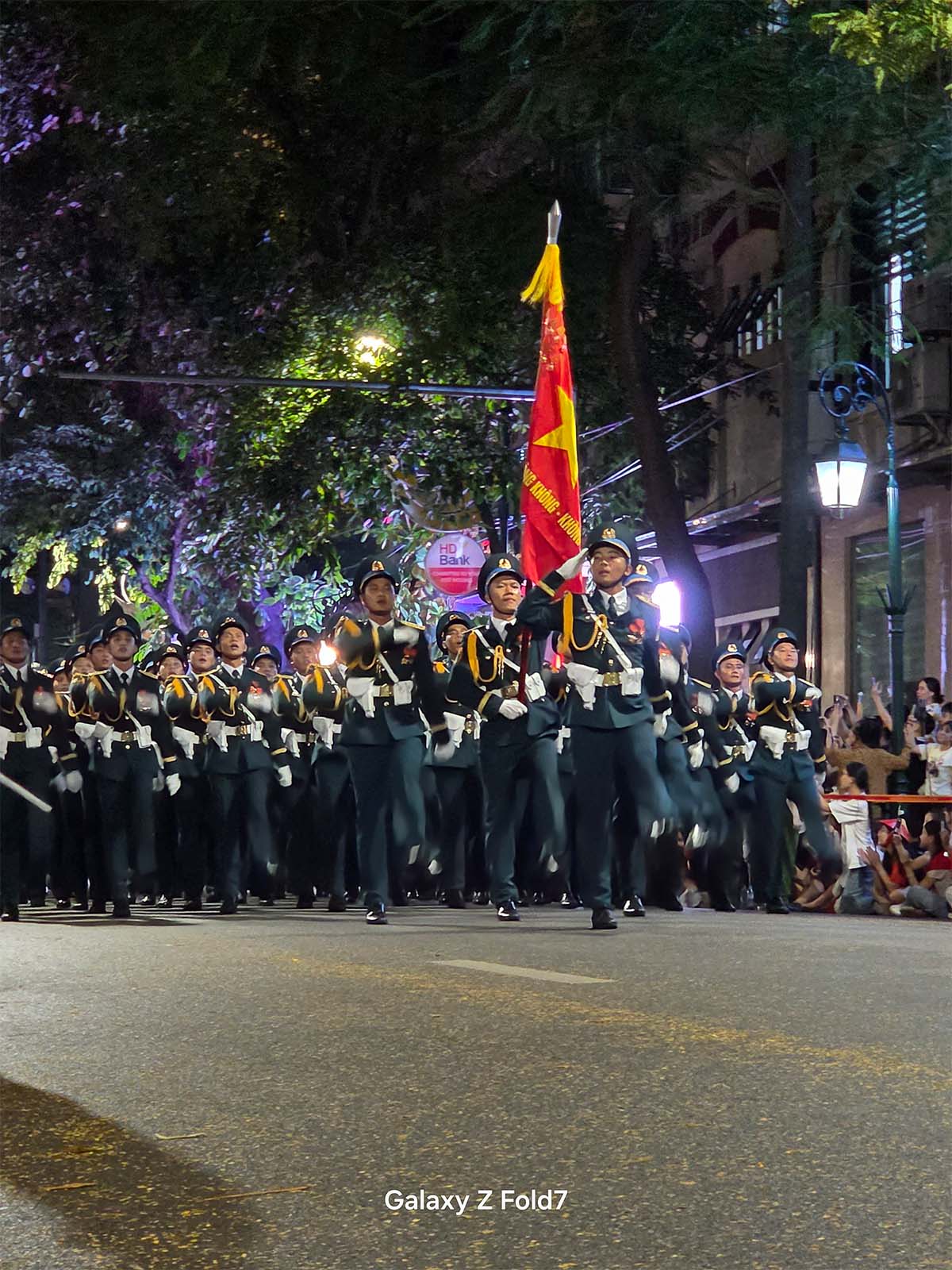 Kết thúc một ngày dài, khi những đoàn diễu hành đã đi qua và dòng người bắt đầu thưa dần, mình ngồi lại, mở Galaxy Z Fold7 và xem lại những gì đã chụp. Đó là những bức ảnh với chất lượng tốt, ẩn sâu bên trong là cả một dòng chảy cảm xúc, một niềm tự hào dân tộc mãnh liệt.