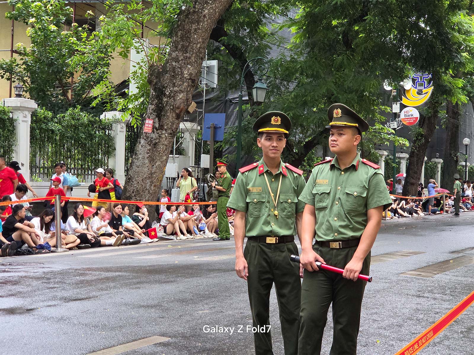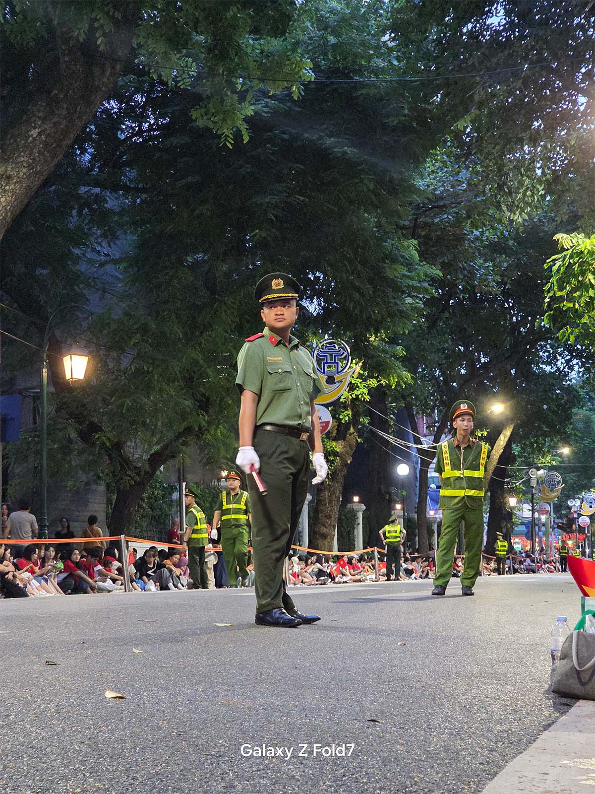 Để ghi lại những khoảnh khắc ấy, mình sử dụng camera telephoto trên Galaxy Z Fold7 với mức zoom 3X. Ảnh cho ra vẫn tạo ấn tượng với màu sắc sống động, chi tiết ở mức khá, vẫn có thể tái tạo không khí hào hùng, trang nghiêm của các chiến sĩ cảnh sát.