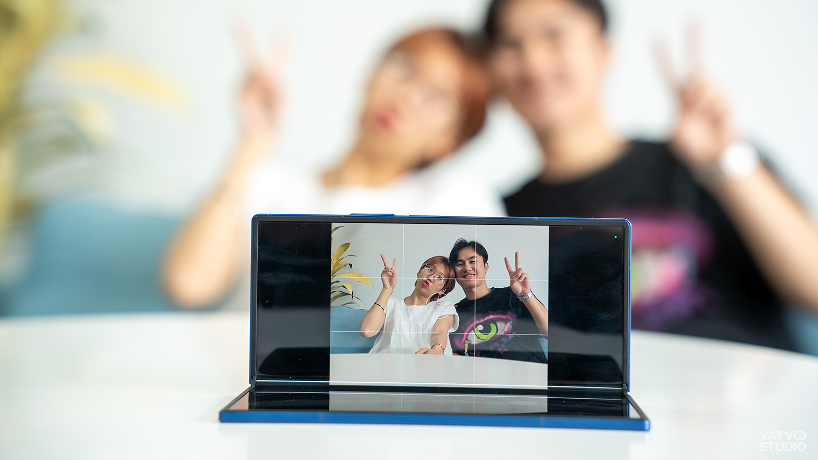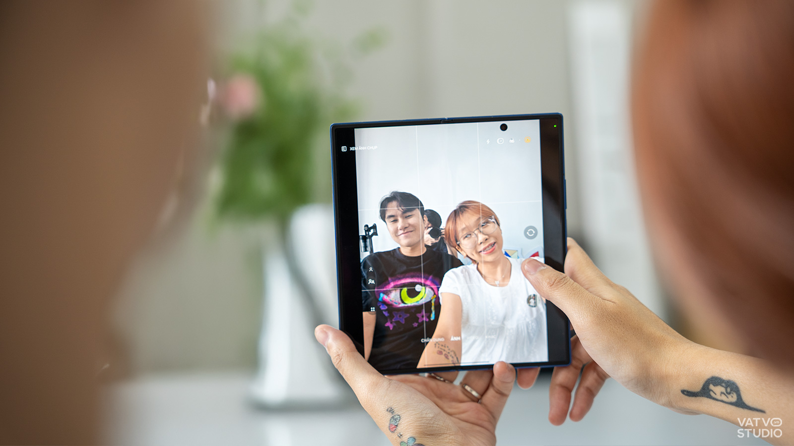 Trong một buổi tối 20/10 tại nhà hàng, thay vì phải loay hoay tìm góc đặt điện thoại hay nhờ nhân viên phục vụ chụp giúp, chỉ cần một thao tác gập nhẹ và đặt Z Fold7 lên bàn là đã có thể giải quyết vấn đề. Cả hai người trong khung hình có thể thoải mái tương tác, trò chuyện trong khi thiết bị ghi lại hình ảnh ổn định, không bị rung mờ. Một ứng dụng thực tế khác là khi muốn ghi lại khoảnh khắc bất ngờ lúc tặng quà. Việc cầm điện thoại quay phim có thể làm mất đi sự tự nhiên. Thay vào đó, chiếc Z Fold7 có thể được đặt một cách kín đáo ở góc phòng từ trước để máy tự động ghi lại toàn bộ diễn biến và những biểu cảm chân thật nhất của người nhận.
