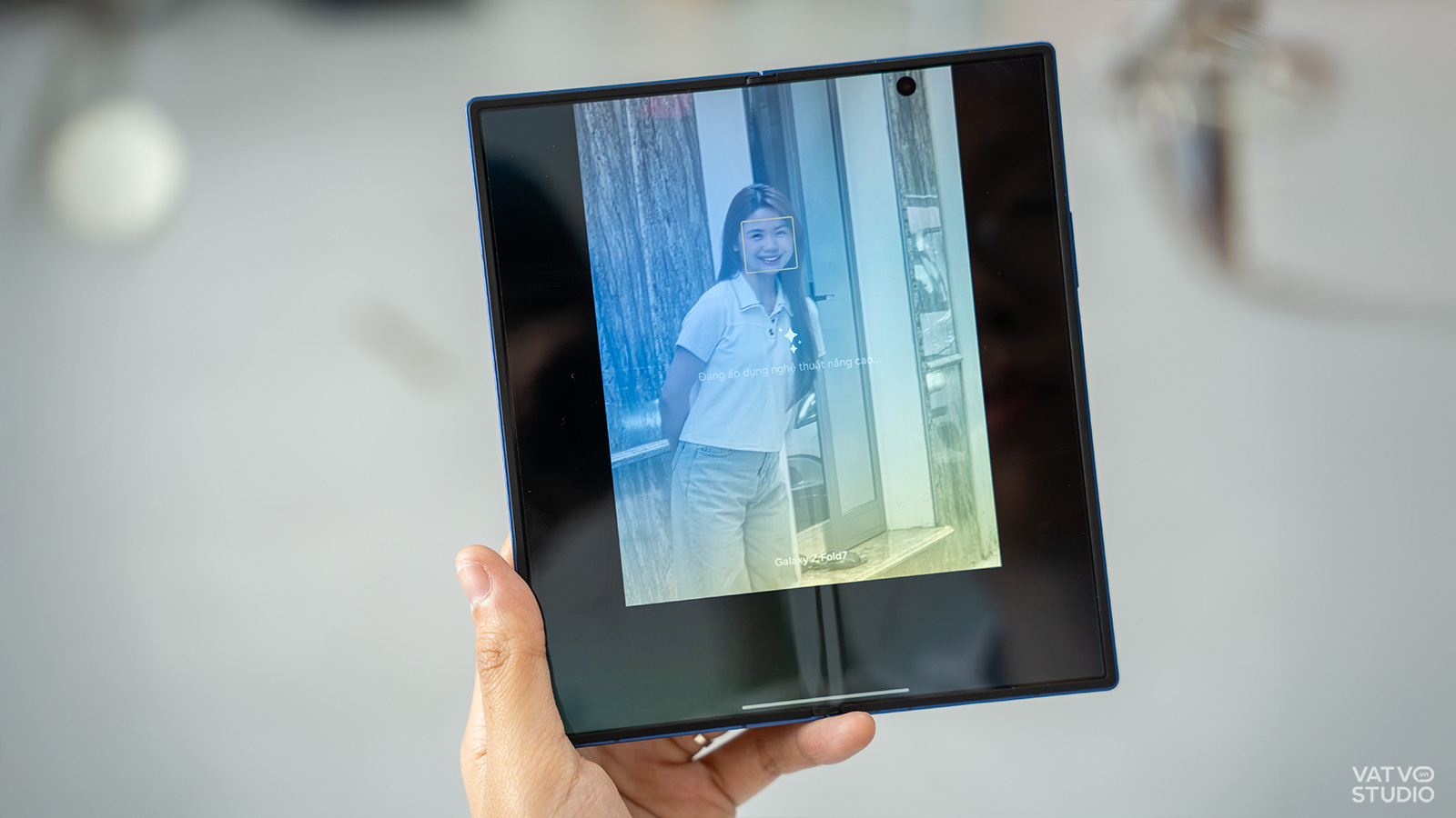 Trong một buổi tối 20/10 tại nhà hàng, thay vì phải loay hoay tìm góc đặt điện thoại hay nhờ nhân viên phục vụ chụp giúp, chỉ cần một thao tác gập nhẹ và đặt Z Fold7 lên bàn là đã có thể giải quyết vấn đề. Cả hai người trong khung hình có thể thoải mái tương tác, trò chuyện trong khi thiết bị ghi lại hình ảnh ổn định, không bị rung mờ. Một ứng dụng thực tế khác là khi muốn ghi lại khoảnh khắc bất ngờ lúc tặng quà. Việc cầm điện thoại quay phim có thể làm mất đi sự tự nhiên. Thay vào đó, chiếc Z Fold7 có thể được đặt một cách kín đáo ở góc phòng từ trước để máy tự động ghi lại toàn bộ diễn biến và những biểu cảm chân thật nhất của người nhận.