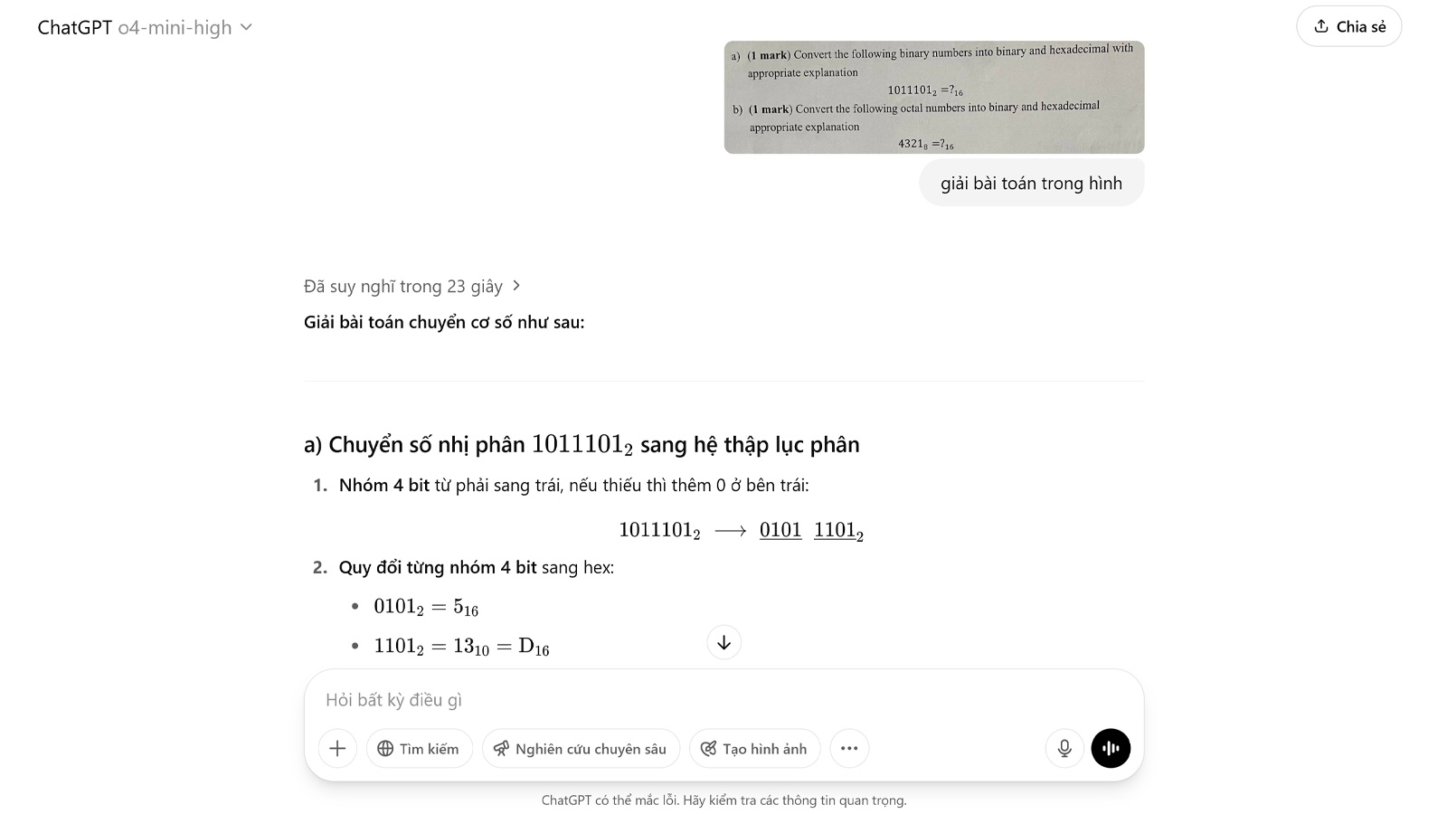 Là phiên bản nâng cấp của o4-mini, o4-mini-high được thiết kế để giải quyết các nhiệm vụ kỹ thuật phức tạp hơn, đòi hỏi độ chi tiết và chính xác cao. Mô hình này dành nhiều thời gian hơn để “suy nghĩ”, từ đó đưa ra những câu trả lời toàn diện và ít sai sót hơn, đặc biệt trong các bài toán toán học hóc búa, lập trình nâng cao hoặc giải thích các khái niệm khoa học chuyên sâu.