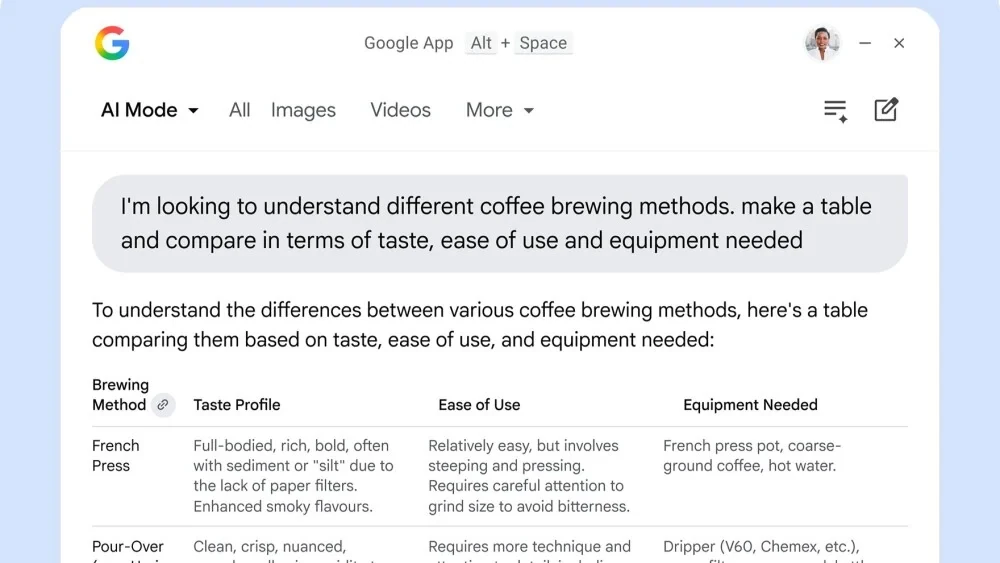 Ứng dụng Google trên máy tính dành cho Windows hiện đã có sẵn trên toàn thế giới. Điểm nhấn lớn nhất của công cụ này là khả năng tìm kiếm toàn hệ thống tương tự như tính năng Spotlight trên macOS. Người dùng có thể truy xuất dữ liệu từ các tệp tin trong máy, ứng dụng, Google Drive cho đến các kết quả trên web thông qua sức mạnh của Gemini AI.