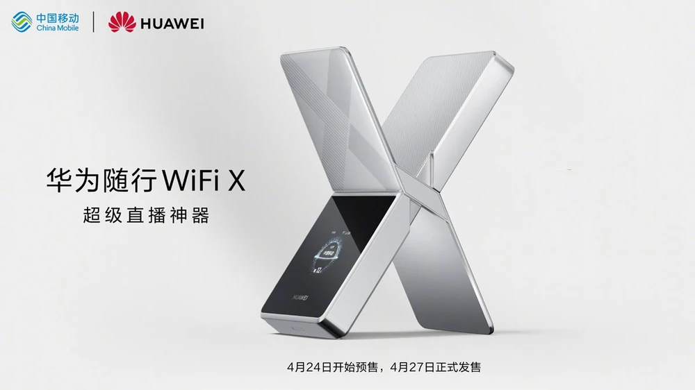 China Mobile vừa thông báo thiết bị router di động HUAWEI Wi-Fi X sẽ chính thức được cho đặt hàng trước bắt đầu từ ngày 24 tháng 4, cho phép khách hàng quan tâm có thể giữ chỗ sản phẩm trước thời điểm mở bán chính thức. HUAWEI và China Mobile từng giới thiệu mẫu router Wi-Fi X này vào tháng 3 năm nay sau khi có những thông tin công bố đầu tiên vào cuối năm ngoài.