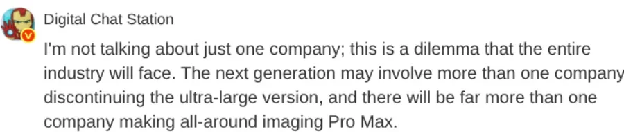 Nguồn tin từ Digital Chat Station cho biết nhiều thương hiệu điện thoại lớn khác cũng đang cân nhắc việc tạm dừng phát triển các dòng sản phẩm cấp Ultra để tái cơ cấu danh mục thiết bị. Trong kế hoạch mới, phiên bản Pro Max sẽ được nâng cấp mạnh mẽ để kế thừa các tính năng cao cấp về hình ảnh vốn trước đây chỉ dành riêng cho dòng Ultra. Nói cách khác, Pro Max sẽ trở thành đại diện cao nhất của các dòng flagship trong tương lai gần.