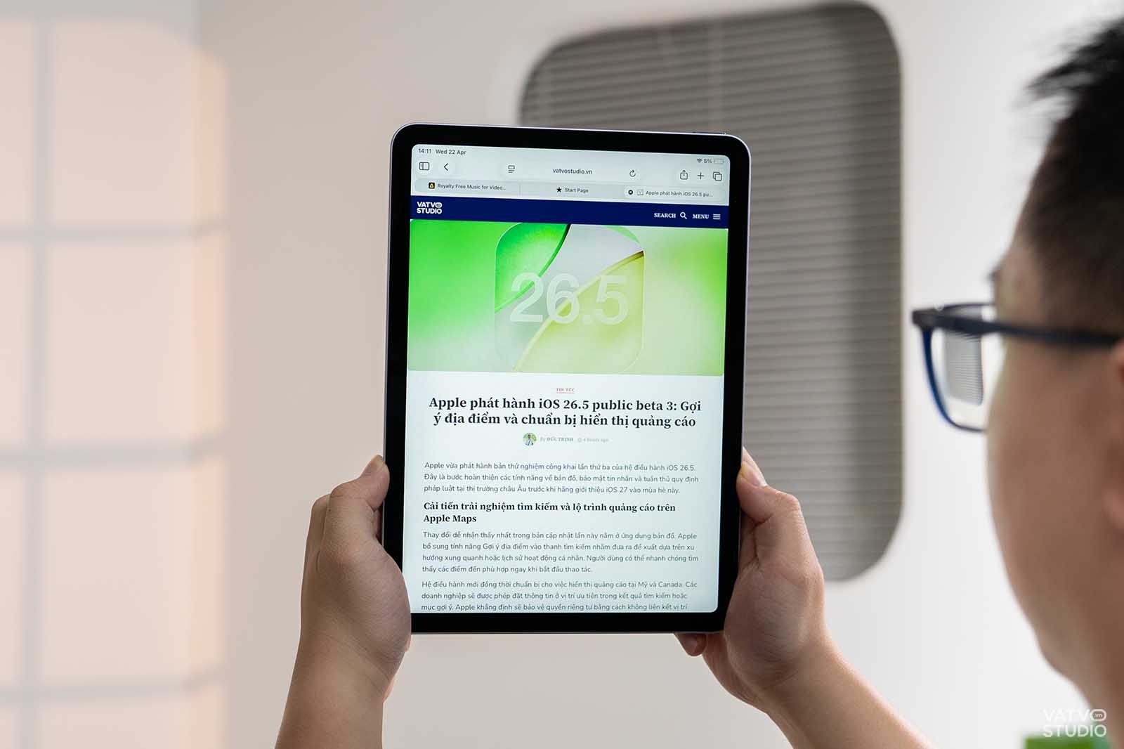 Một điểm cộng rất lớn của thiết bị năm nay nằm ở khả năng kiểm soát nhiệt độ xuất sắc. Thế hệ M3 trước đây thường bị phàn nàn vì mặt lưng ấm lên khá nhanh khi hoạt động cường độ cao. Tuy nhiên, iPad Air M4 đã giải quyết triệt để vấn đề này, mang lại cảm giác cầm nắm thoải mái và dễ chịu hơn rất nhiều trong suốt quá trình sử dụng liên tục.