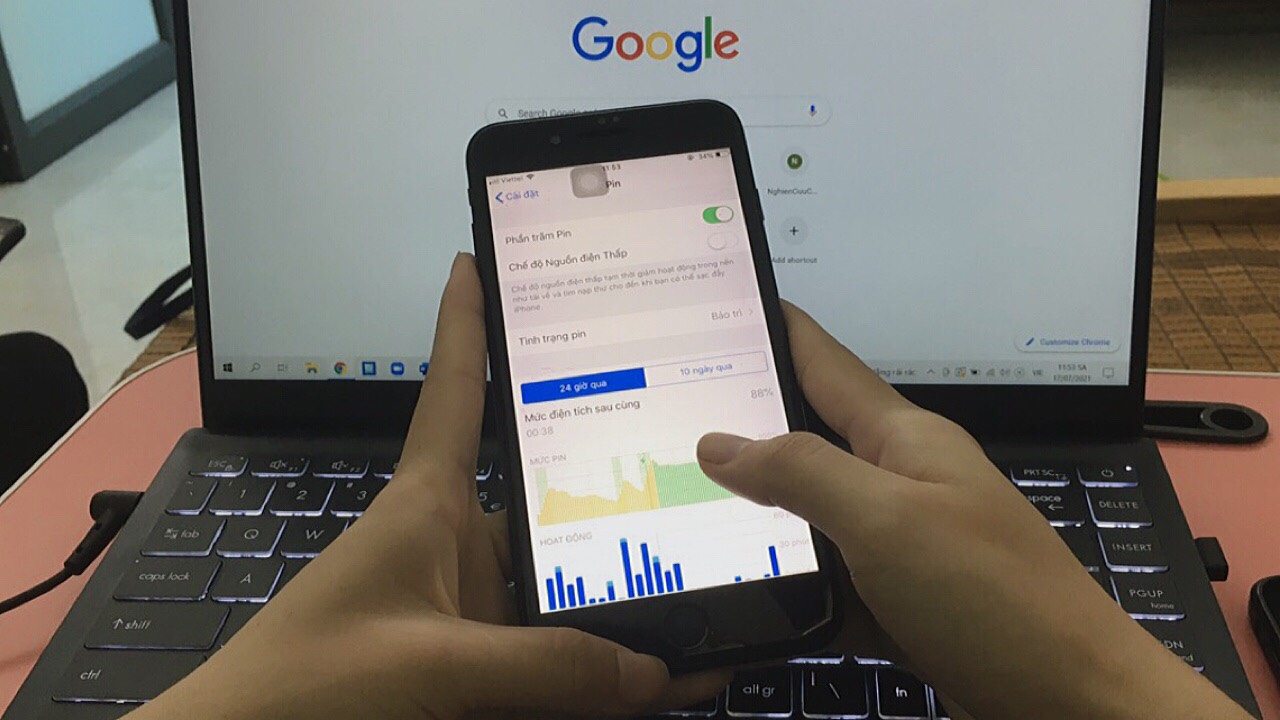 Đã thế sạc lại còn rất chậm, mình thì dùng điện thoại nhiều nên phải vừa sạc vừa dùng. Lúc này nhiệt độ là thứ khiến mình hơi run, nổ lúc nào không hay á >.<. Và chắc là do pin chai nên mình để qua đêm thì máy cũng tụt pin khá nhiều, khoảng 6-7 %.