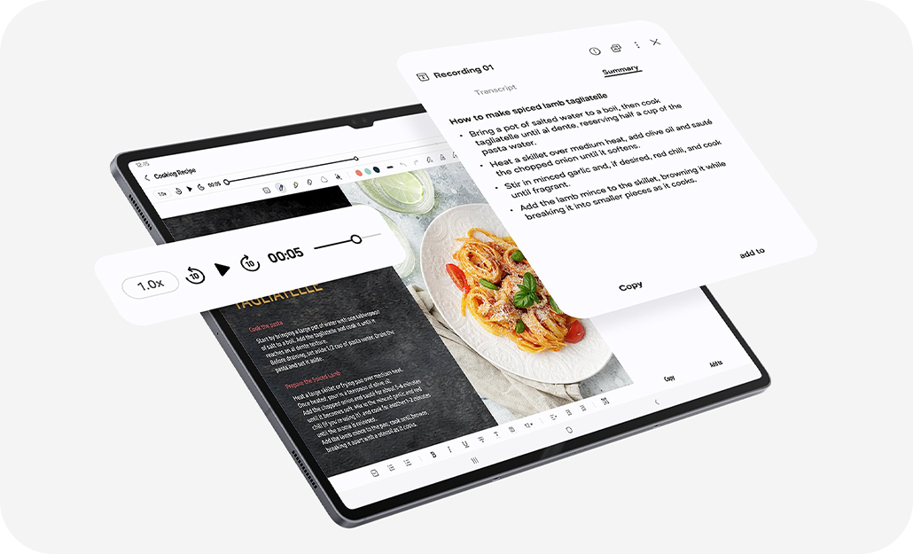 Với Dimensity 9300+, Galaxy Tab S10 Ultra đảm bảo hiệu năng mượt mà, đáp ứng mọi nhu cầu từ cơ bản đến nâng cao trong khoảng thời gian dài. Ngoài ra, bút S Pen cũng đóng vai trò hữu ích trong những tình huống cần ghi chú nhanh trong các cuộc họp hay ký kết tài liệu điện tử. Riêng với những cuộc họp, người dùng còn có thể ghi âm lại, sau đó dùng Galaxy AI để tóm tắt và đưa ra những ý chính, nổi bật nhất.