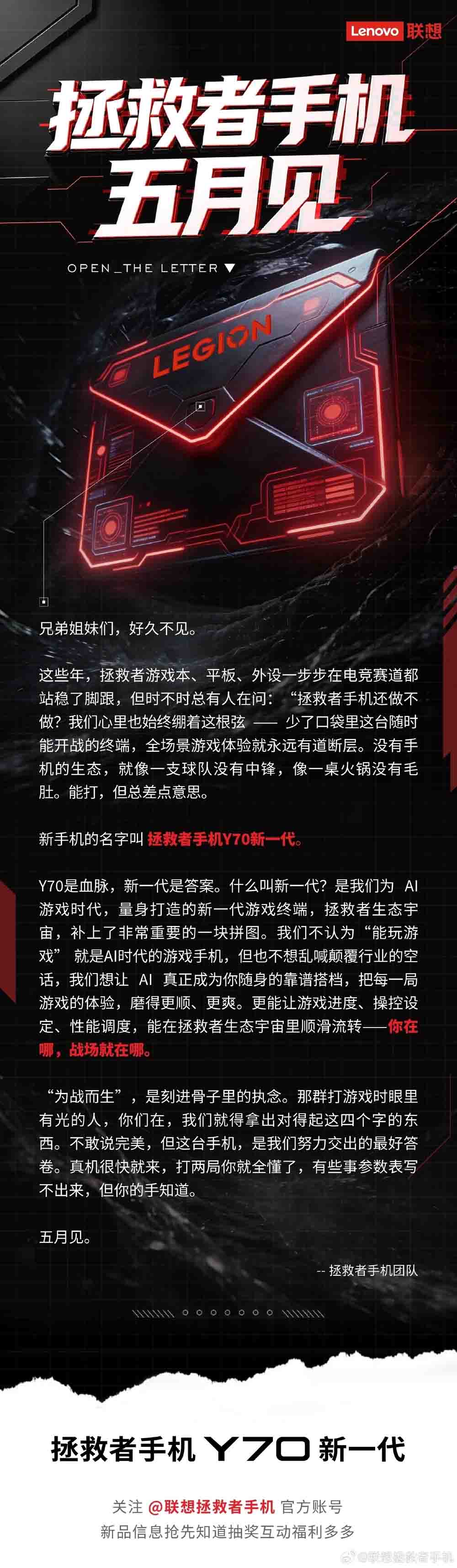 Trong bối cảnh ASUS dường như đang có những bước lùi nhất định ở phân khúc điện thoại chơi game, Lenovo lại gây bất ngờ khi thông báo kế hoạch trở lại. Trên mạng xã hội Weibo, hãng công nghệ này đã đăng tải những thông tin đầu tiên về thế hệ kế nhiệm của dòng Legion Y70. Trong bài đăng, thương hiệu nhấn mạnh vào kỷ nguyên chơi game với sự hỗ trợ của trí tuệ nhân tạo (AI) và khẳng định toàn bộ hệ sinh thái Lenovo Legion đã sẵn sàng để người dùng tham gia vào các trận chiến.