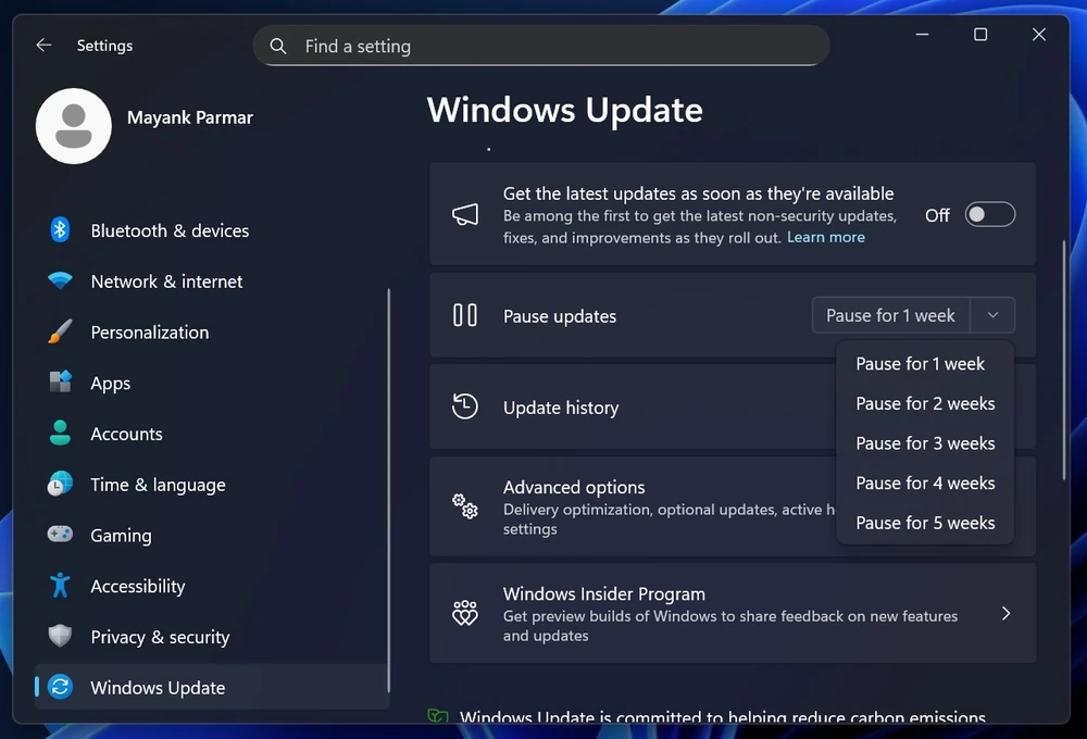 Hệ thống cập nhật mới cho phép người dùng tạm dừng cập nhật vô thời hạn mà không bị ép buộc khởi động lại máy ở chế độ nền. Microsoft cũng đang hướng tới mô hình khởi động lại một lần mỗi tháng vào ngày thứ Ba tuần thứ hai của tháng.