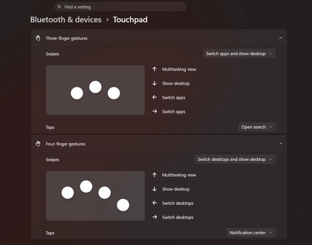 Windows sẽ bổ sung phản hồi xúc giác cho các hành động trên cửa sổ như snapping hoặc thay đổi kích thước. Ngoài ra, bạn có thể tùy chỉnh kích thước vùng nhận diện chuột phải trên bàn di chuột theo các mức khác nhau.