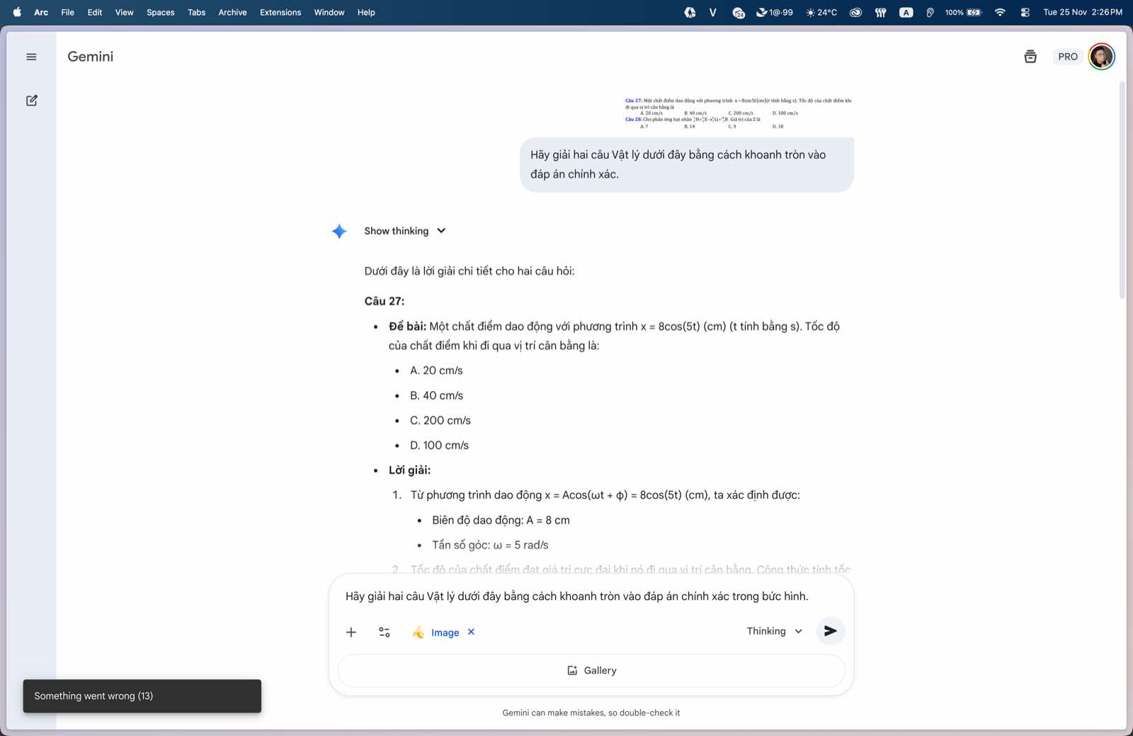 Thứ hai, dù rất mạnh mẽ nhưng AI vẫn còn tồn tại những giới hạn nhất định. Trong quá trình thử nghiệm, mình đã gặp lỗi khi yêu cầu Nano Banana Pro giải các câu hỏi trắc nghiệm vật lý theo kiểu “khoanh tròn vào đáp án đúng”.