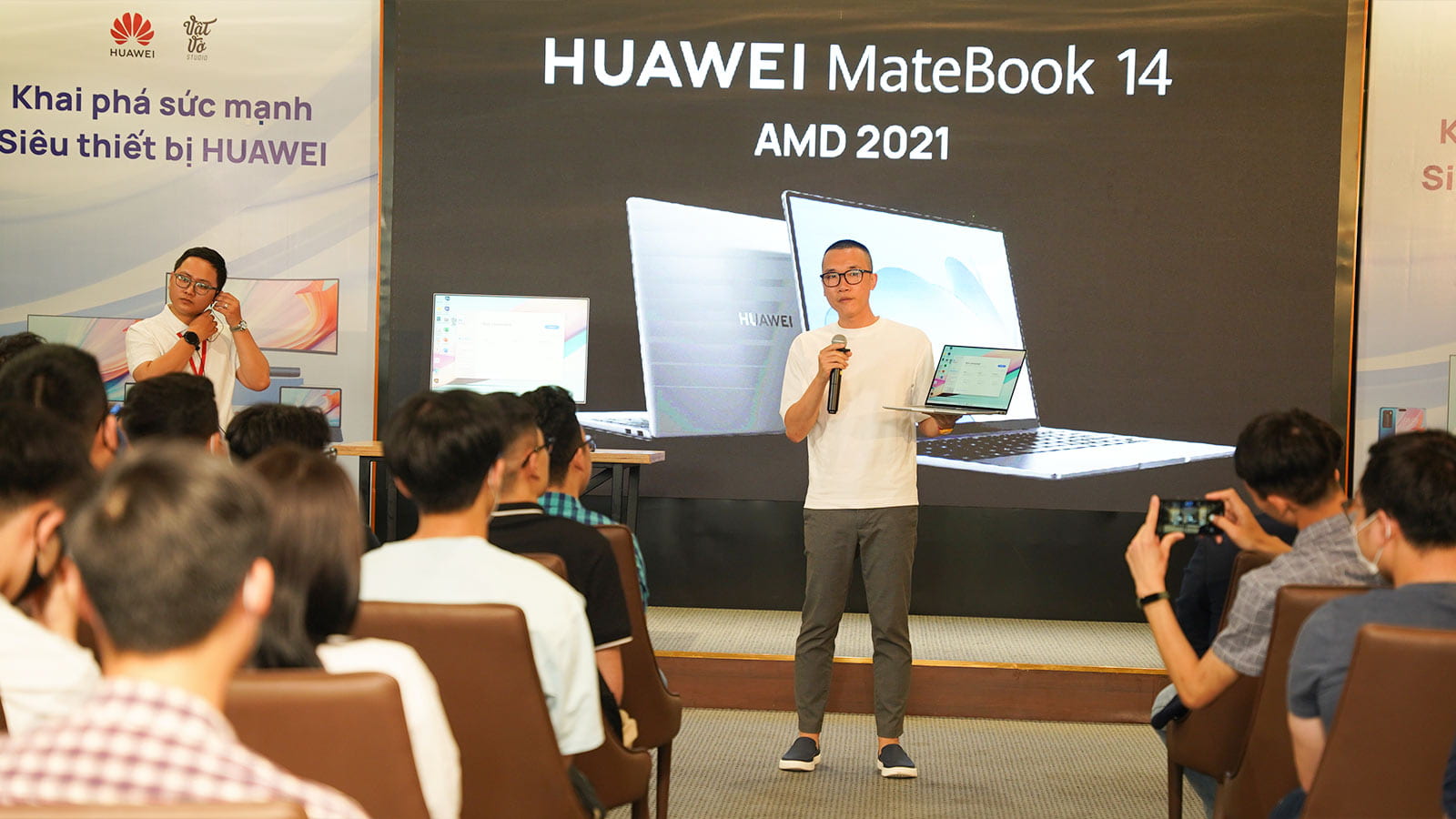 Trong sự kiện, hầu hết các sản phẩm của Huawei đang được bán chính hãng tại Việt Nam đều được trưng bày cho người tham gia trải nghiệm. Trong đó có thể kể tới Huawei MateView, Huawei MateView GT, Huawei MatePad 11, Huawei Freebuds Lipstick, Huawei Watch GT 3,… Và đặc biệt là sự xuất hiện của chiếc Huawei MateBook 14 phiên bản AMD mới nhất. Phiên bản này đáp ứng nhu cầu của người dùng yêu thích phần cứng của AMD với Ryzen 5500U.