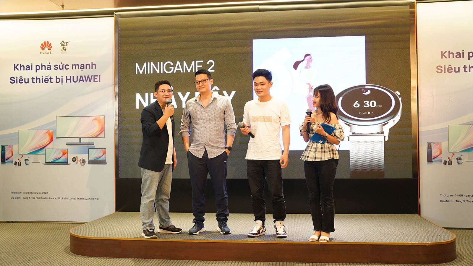 Cuối cùng, phần khiến nhiều người thích thú nhất của sự kiện là các minigame nhỏ liên quan tới các sản phẩm của Huawei. Trong đó, giải thưởng cao nhất là chiếc Huawei Freebuds Pro trị giá 4.990.000đ đã được trao cho người trả lời đúng nhiều câu hỏi nhất trong chương trình. Ngoài ra, các phần quà khác như Huawei SoundStone, Huawei Band 4e, Huawei Wireless Charging Lamp cũng được trao cho người chơi may mắn tham gia chương trình. Tổng giá trị quà tặng của chương trình lên tới 20 triệu đồng.