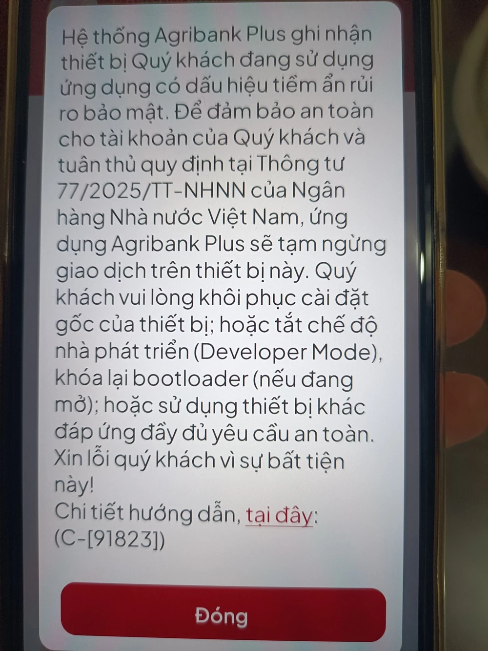 Các phương thức tùy biến phổ biến như Root máy hoặc kích hoạt chế độ gỡ lỗi qua máy ảo hiện trở thành lý do khiến ứng dụng tài chính báo lỗi bảo mật. Trong nhiều tình huống, quyền truy cập sẽ bị khóa hoàn toàn để bảo vệ thông tin cá nhân. Điều này gây khó khăn trực tiếp cho nhóm khách hàng ưu tiên dùng điện thoại xách tay hoặc máy nội địa từ thị trường Trung Quốc.