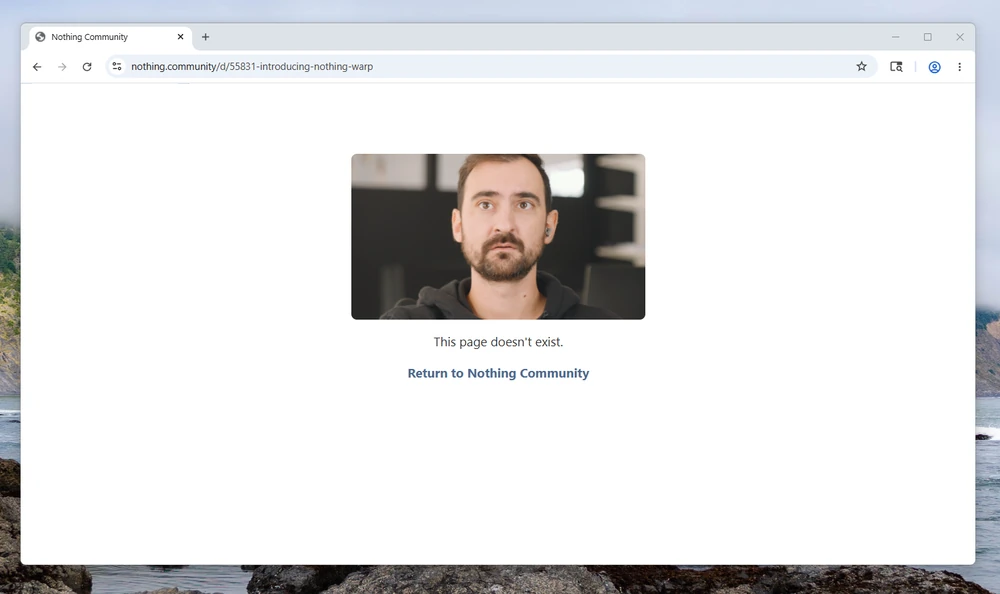 Tuy nhiên, một sự việc kỳ lạ đã xảy ra khi Nothing xóa bỏ hoàn toàn ứng dụng Warp chỉ vài giờ sau khi phát hành. Hiện tại, bài đăng giới thiệu trên trang tin của Nothing đã bị xóa. Đường dẫn tải ứng dụng trên Play Store cũng biến mất đối với những người chưa kịp cài đặt và tiện ích mở rộng trên Chrome cũng không còn tồn tại.