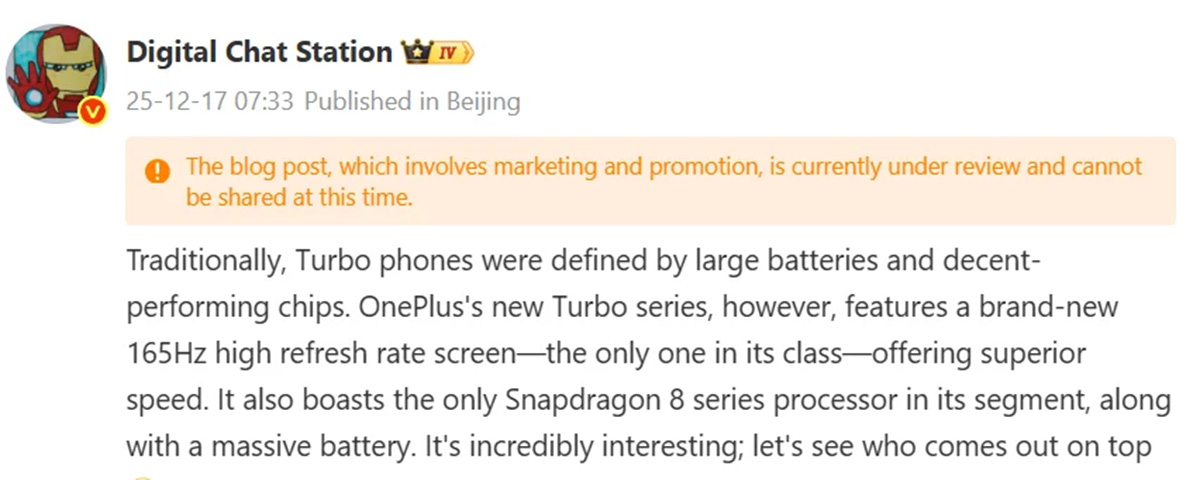 Hôm nay (17/12), ông Li Jie Louis, chủ tịch OnePlus, đã chính thức xác nhận thương hiệu này sẽ trình làng dòng OnePlus Turbo tại thị trường Trung Quốc vào đầu năm sau. Dù thông số kỹ thuật chi tiết chưa được công bố, nhưng các nguồn tin uy tín khẳng định dòng máy này được sinh ra để phục vụ nhóm người dùng ưu tiên hiệu năng duy trì (sustained performance) và thời lượng pin bền bỉ.