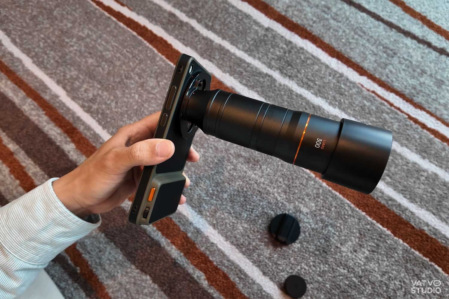 Ống nhân tiêu cự Hasselblad 300mm Explorer có cấu tạo từ 16 thấu kính chia thành 11 nhóm khác nhau. Khi kết hợp với camera tele 3x có sẵn trên máy, phụ kiện giúp đẩy mức thu phóng quang học lên tới 13x, tương đương tiêu cự 300mm. Nếu tận dụng thêm khả năng xử lý của cảm biến, người dùng có thể đạt tiêu cự lên tới 690mm, tương đương mức zoom kỹ thuật số 30x.