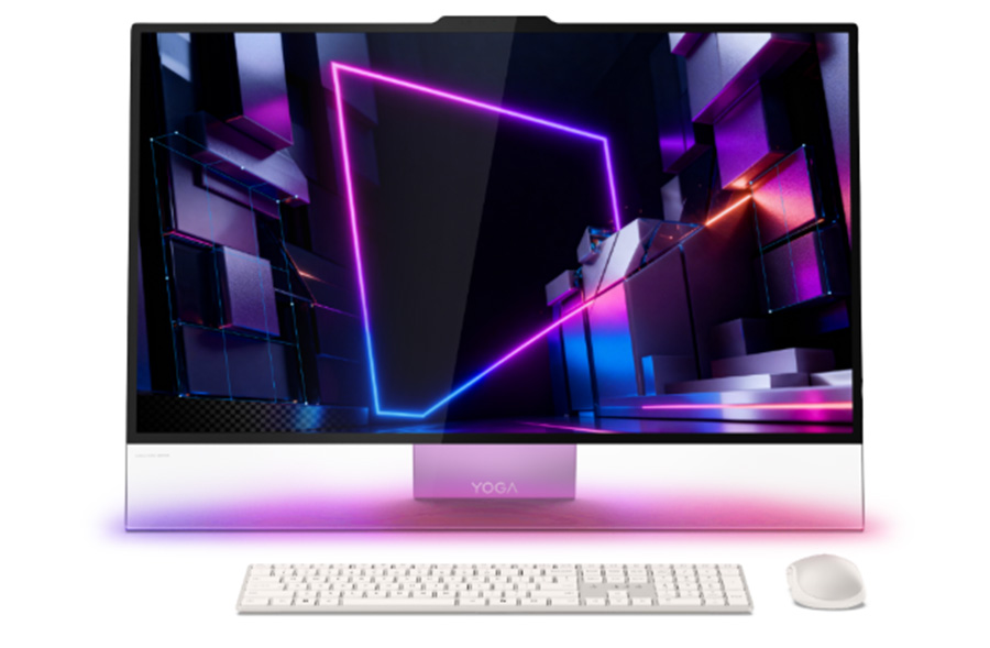 Điểm nhấn mang tính đột phá nhất của Yoga AIO i Aura Edition chính là dải thanh trong suốt nằm ở cạnh dưới màn hình, tích hợp hệ thống chiếu sáng thích ứng Adaptive Lighting vô cùng độc đáo. Công nghệ này không chỉ đồng bộ hóa với nội dung video đang hiển thị để tạo hiệu ứng môi trường đắm chìm, mà còn đóng vai trò là một hệ thống thông báo thông minh.