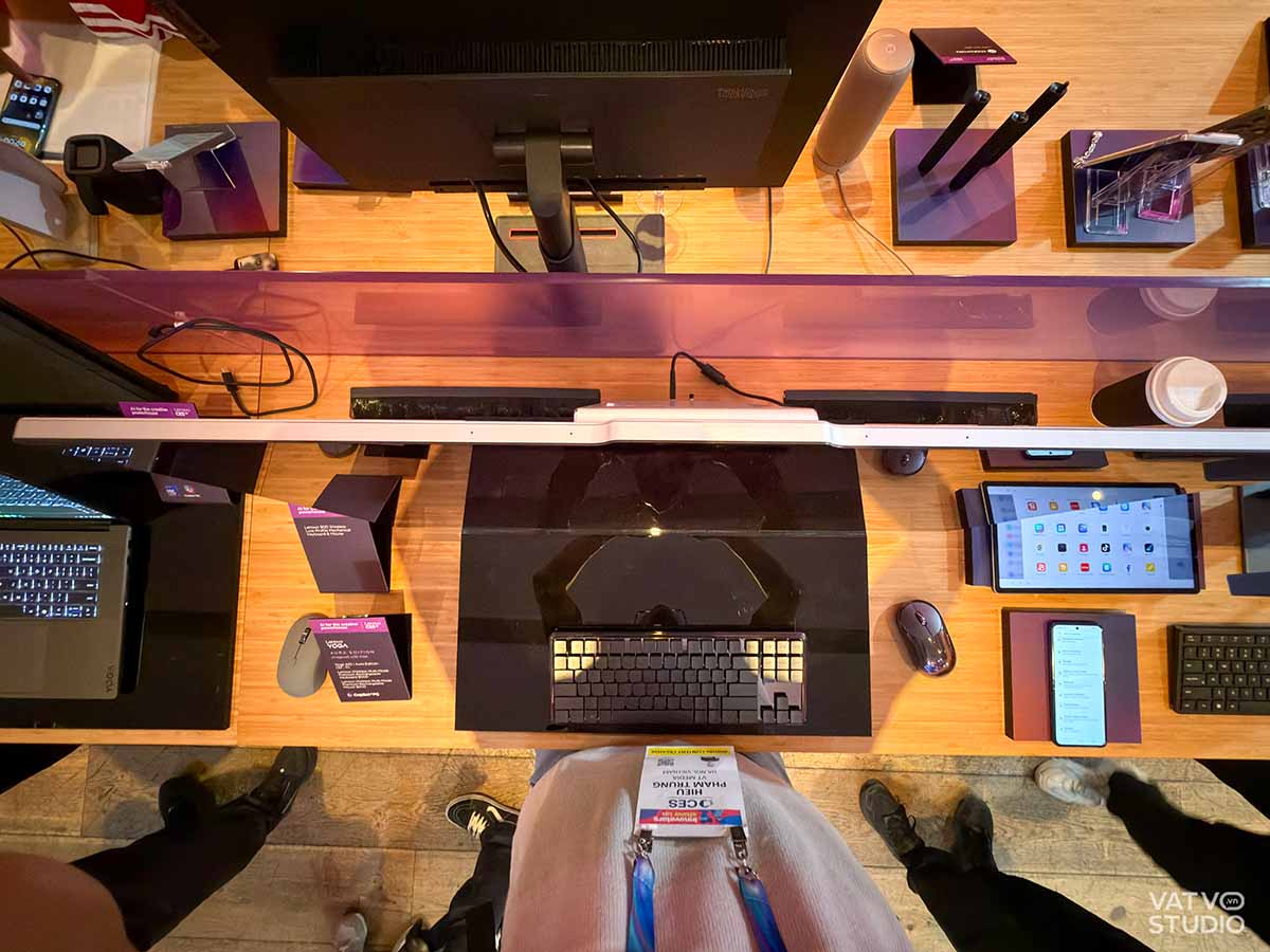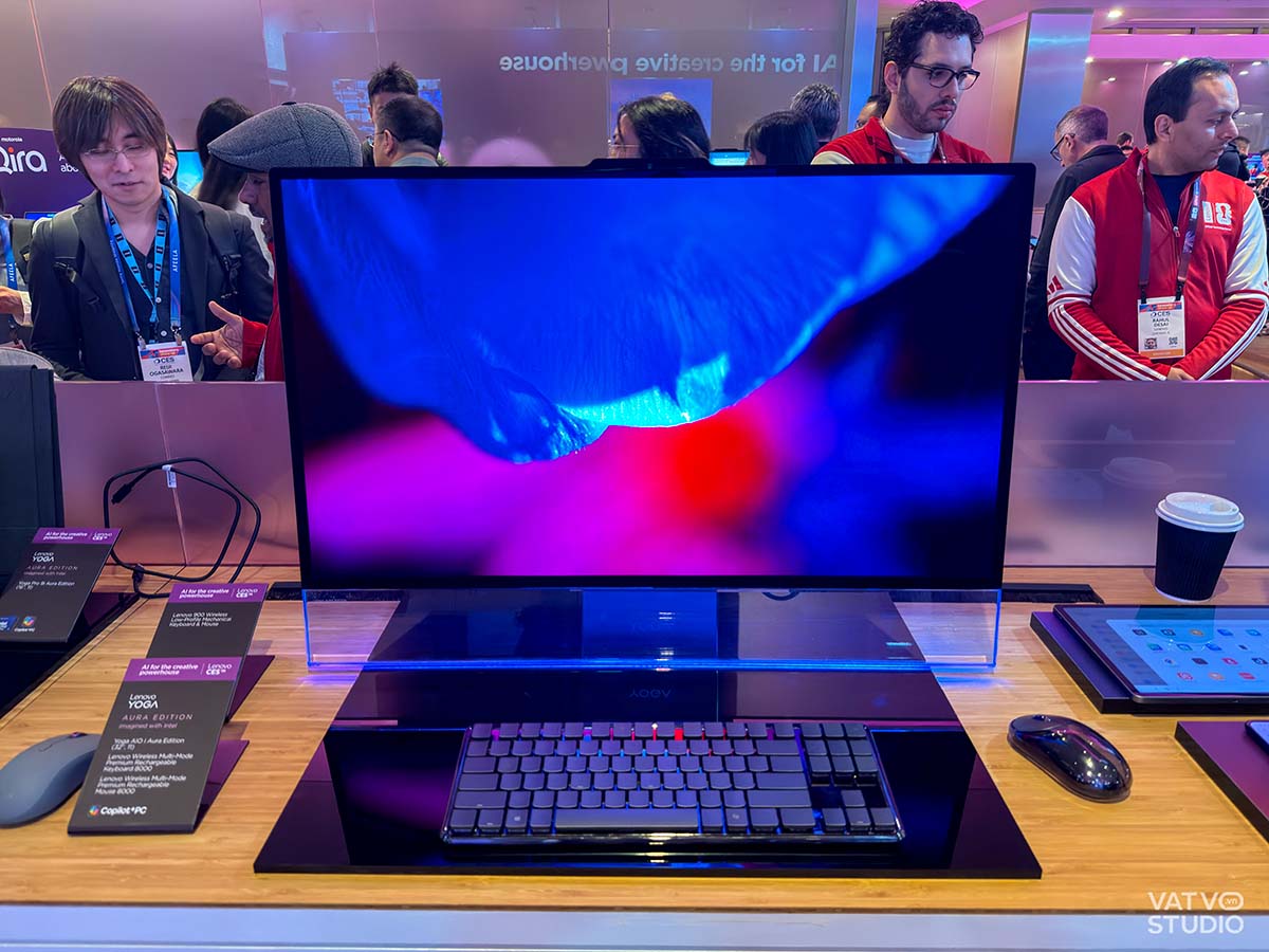 Tại triển lãm CES năm nay, gian hàng của Lenovo không chỉ gây chú ý bởi sự góp mặt của các mẫu laptop thế hệ mới hay những dòng mini PC nhỏ gọn, mà còn tạo nên điểm nhấn khác biệt với sự xuất hiện của mẫu máy tính All-in-One Yoga AIO i Aura Edition (32”, 11). Đây là một chiếc Copilot+ PC được thiết kế theo ngôn ngữ “floating” (lơ lửng), mang lại vẻ đẹp sang trọng và hiện đại cho bất kỳ không gian làm việc hay studio sáng tạo nào.