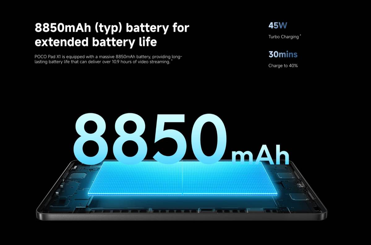 Kết hợp cùng 8GB RAM và bộ nhớ trong lên tới 512GB, POCO Pad X1 không ngán ngại các tựa game “sát phần cứng” như Genshin Impact hay Delta Force. Trải nghiệm thực tế cho thấy máy xử lý tác vụ nặng trơn tru, mang lại cảm giác phấn khích không thua kém gì các thiết bị gaming handheld chuyên dụng. Để “gánh” cấu hình này, viên pin 8.850 mAh cùng sạc nhanh 45W được tích hợp sẵn, đảm bảo cuộc vui không bị gián đoạn quá lâu.