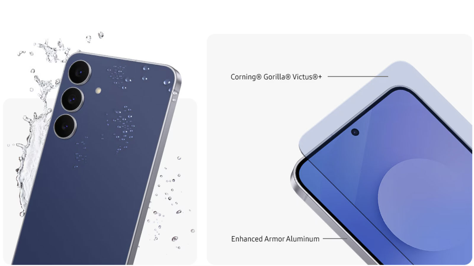 Mặt trước và sau của máy được bảo vệ bởi kính cường lực Gorilla Glass Victus Plus, đi kèm chuẩn kháng nước, kháng bụi IP68. Về khả năng hiển thị, Galaxy S25 FE được trang bị màn hình Dynamic AMOLED 2X 6,7 inch, độ phân giải Full HD+ và tần số quét 120Hz, mang lại trải nghiệm hình ảnh mượt mà, sống động.