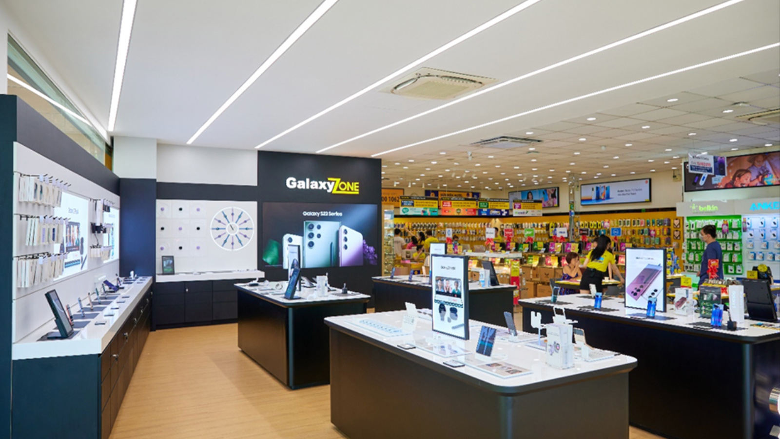 Tiếp nối mục tiêu nâng tầm công nghệ cho người dùng Việt, thiết lập mạng lưới hàng trăm cửa hàng trải nghiệm Samsung, tập đoàn Samsung cùng đối tác Thế Giới Di Động – một trong những nhà bán lẻ số 01 Việt Nam cho ra mắt thương hiệu GalaxyZone. Cửa hàng trải nghiệm Samsung GalaxyZone tận dụng triệt để những ưu điểm nổi bật trong không gian cửa hàng bán lẻ sẵn có, tái tạo và đầu tư thiết kế theo tiêu chuẩn quốc tế đem đến trải nghiệm công nghệ một cách khác biệt, đẳng cấp và đáng kinh ngạc.