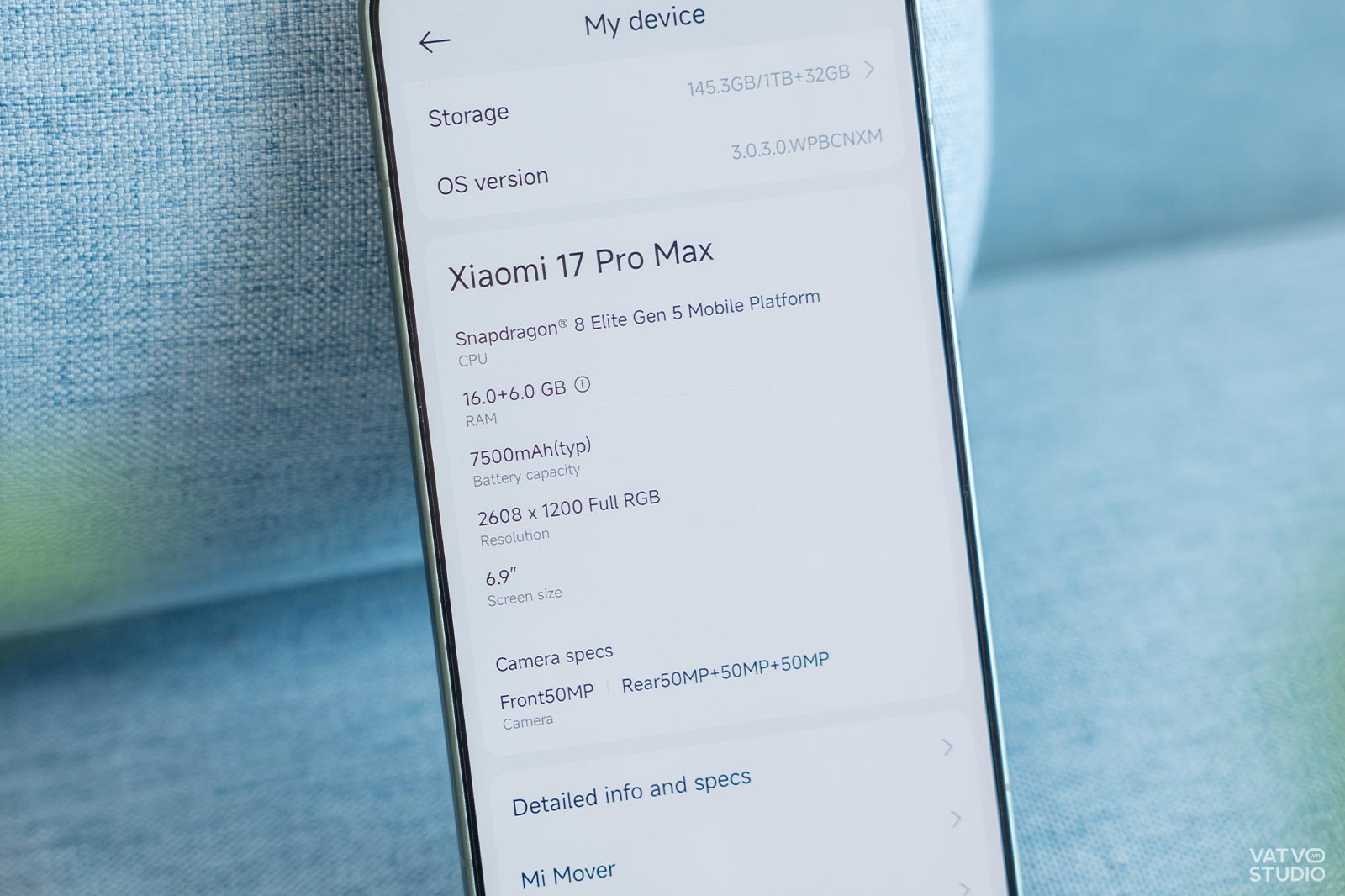 Chiếc Xiaomi 17 Pro Max mà mình thử nghiệm trong bài kiểm tra lần này có phiên bản bộ nhớ rất cao, lên đến 16GB RAM và 1TB bộ nhớ trong. Máy cũng được chạy sẵn HyperOS 3, giao diện người dùng mới dựa trên nền Android 16.