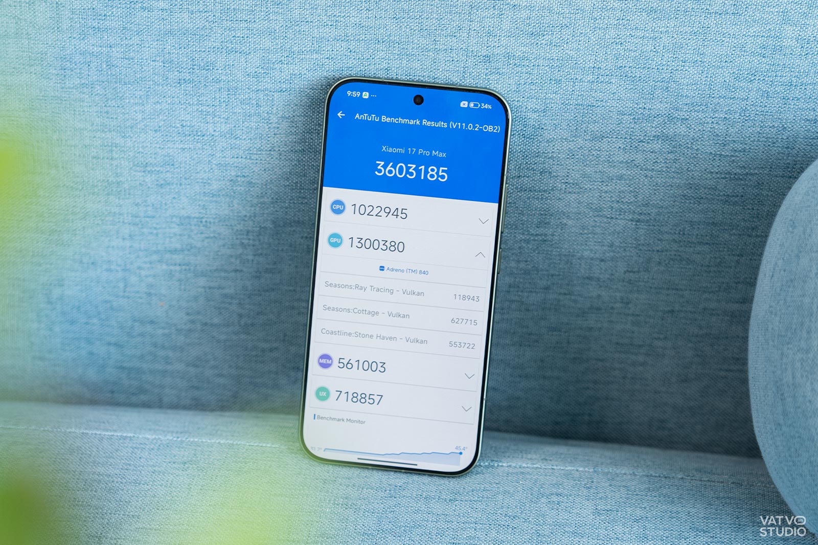 Với AnTuTu Benchmark v11, Xiaomi 17 Pro Max đạt con số ấn tượng với 3,6 triệu điểm, trong đó điểm GPU chiếm tới hơn 1,3 triệu điểm. Tức là, chỉ riêng sức mạnh xử lý đồ họa của nó đã tương đương với hiệu năng tổng thể của một con chip tầm trung bây giờ. So với thế hệ trước là Xiaomi 15 Ultra (khoảng 3 triệu điểm), điểm số trên Xiaomi 17 Pro Max đã tăng vọt gần 20%, một bước nhảy vọt đáng kể.