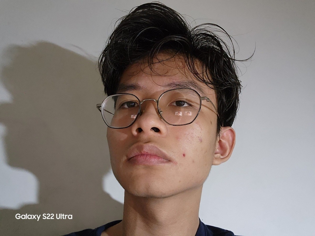 Cuối cùng là điều kiện khó khăn nhất, ánh sáng rất thấp. Với Galaxy S22 Ultra, các chi tiết trên khuôn mặt và đặc biệt là phần tóc nhoè thấy rõ. Cánh cửa gỗ ở phía sau cũng bị noise rất nhiều. Đối với chiếc Galaxy S23 Ultra, khả năng quay chụp trong bóng tối mới đã phát huy hiệu quả khi các chi tiết như gọng kính, tóc được tái tạo sắc nét hơn; màu sắc khuôn mặt cùng trở nên hồng hào hơn. Tuy vậy, phần cánh cửa do bị khử nhiễu mạnh nên nó gần như mất hết các hoạ tiết trên bề mặt cửa.