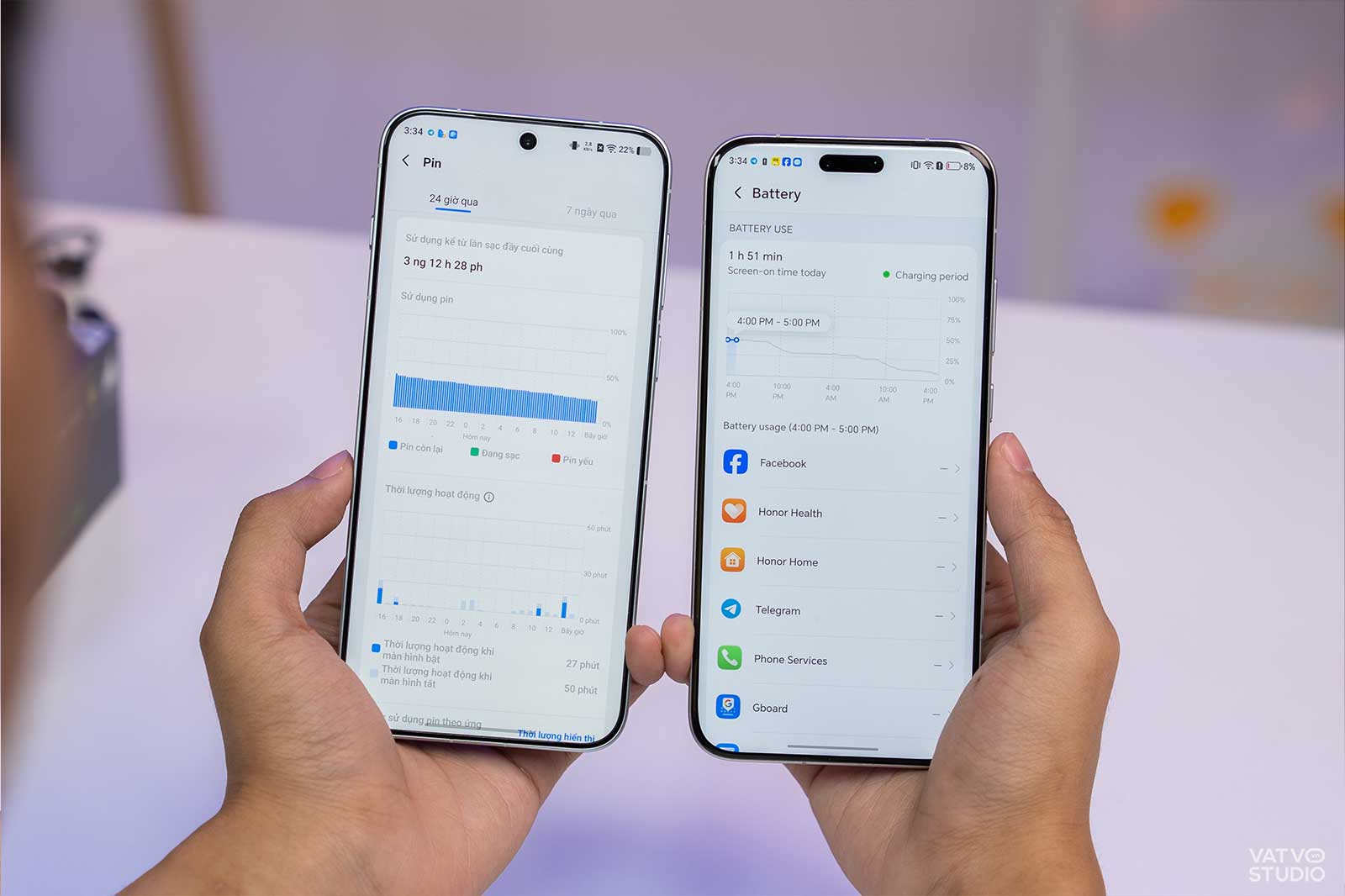 Khi đặt cạnh nhau, màn hình của HONOR Magic8 Pro sẽ cho màu sắc đậm đà, nịnh mắt và rõ nét hơn. Trong khi đó, màn hình của vivo X300 Pro có cảm giác hơi đục nhẹ và các gam màu chưa được đẩy nịnh mắt tốt như HONOR. Cần nhấn mạnh rằng sự khác biệt này chỉ có thể thấy rõ ràng khi so sánh cạnh nhau, còn khi dùng đơn lẻ, đây đều là những màn hình cho chất lượng hiển thị tốt.