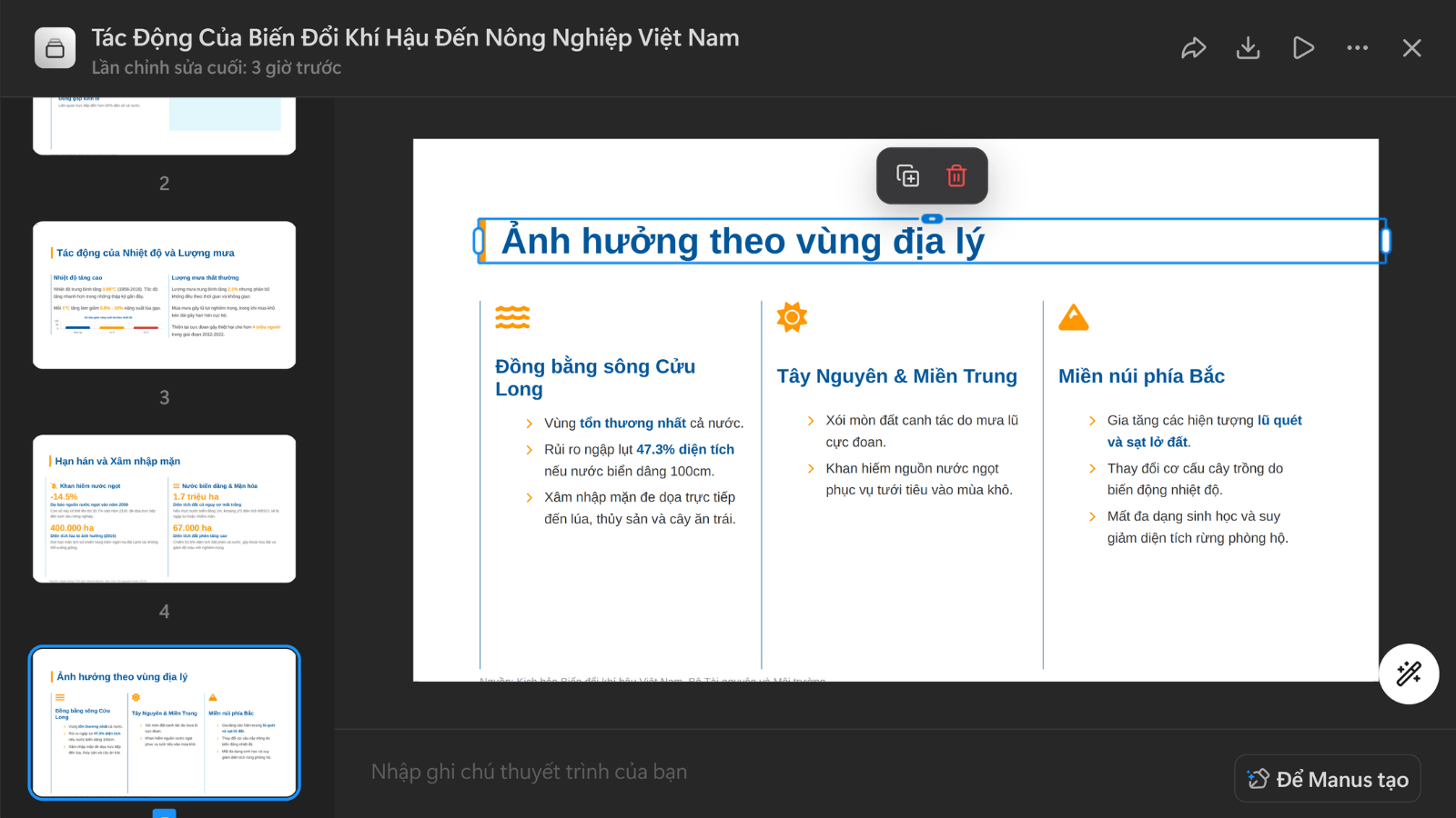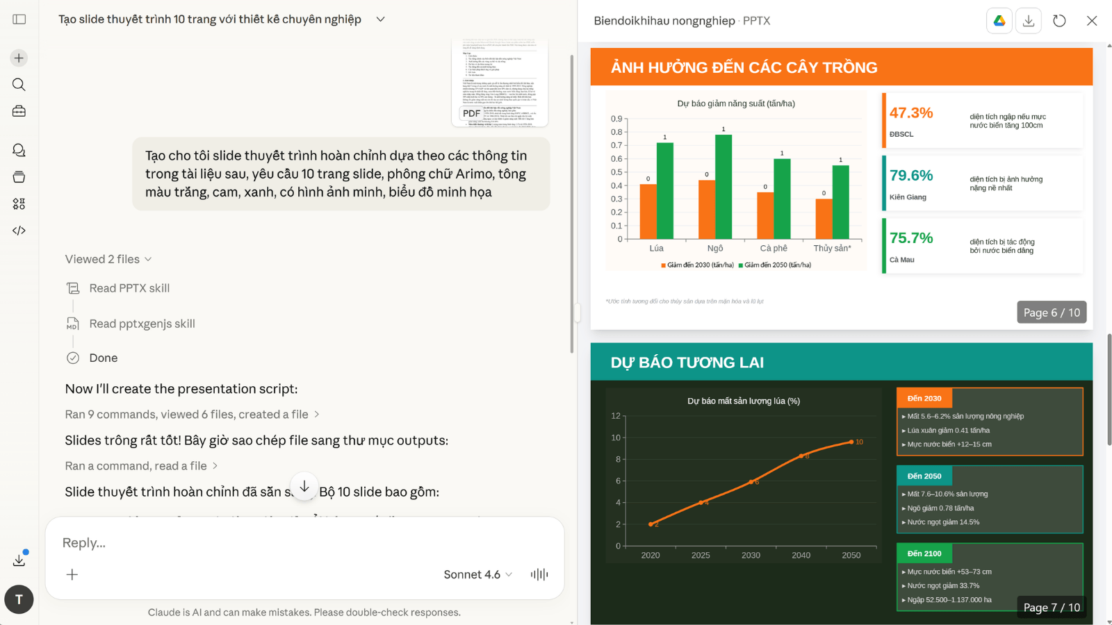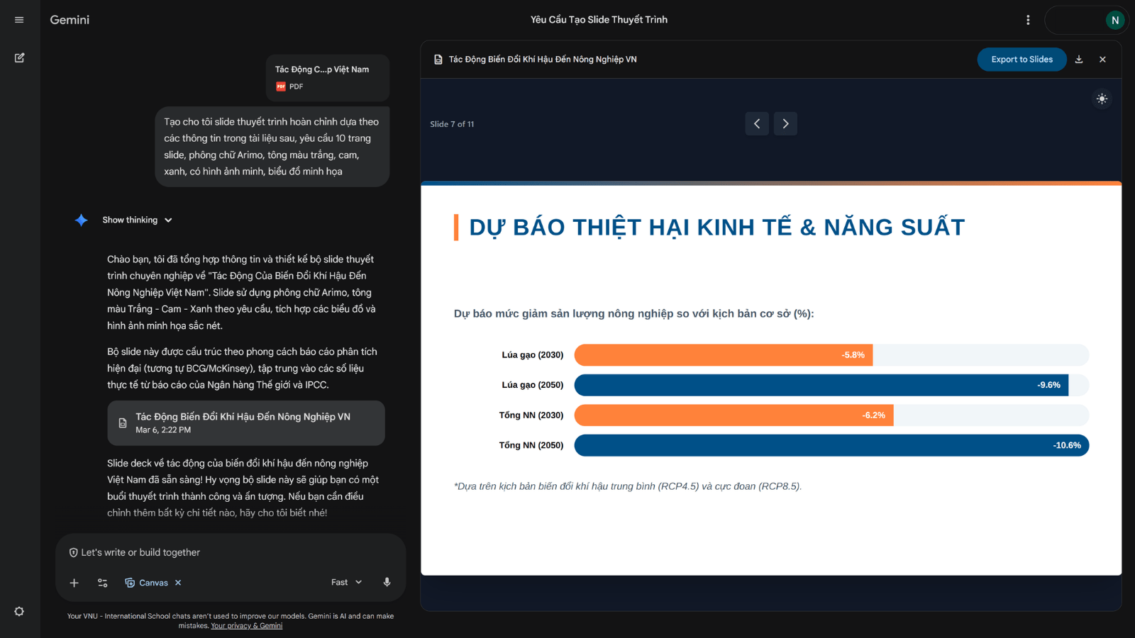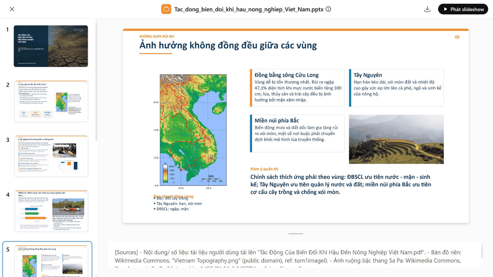 Một điểm cộng chung là cả bốn chatbot đều hỗ trợ xuất dữ liệu ra các định dạng trình chiếu phổ biến hiện nay, giúp người dùng không phải lo lắng về rào cản phần mềm. Gemini và Manus sẽ tiến hành tạo slide và liên kết trực tiếp với nền tảng trực tuyến Google Slides, một định dạng cực kỳ phù hợp cho các thao tác làm việc trực tuyến và chia sẻ nhóm. Ngược lại, ChatGPT và Claude sẽ tập hợp dữ liệu để tạo tệp tải xuống sử dụng trên phần mềm Microsoft PowerPoint. Nhìn chung, việc liên kết trực tiếp tới các nền tảng truyền thống này giúp người dùng dễ dàng tiếp cận, đồng thời vô cùng thuận tiện trong việc chủ động chỉnh sửa lại nội dung, thay đổi hiệu ứng và tiến hành trình chiếu theo ý muốn.