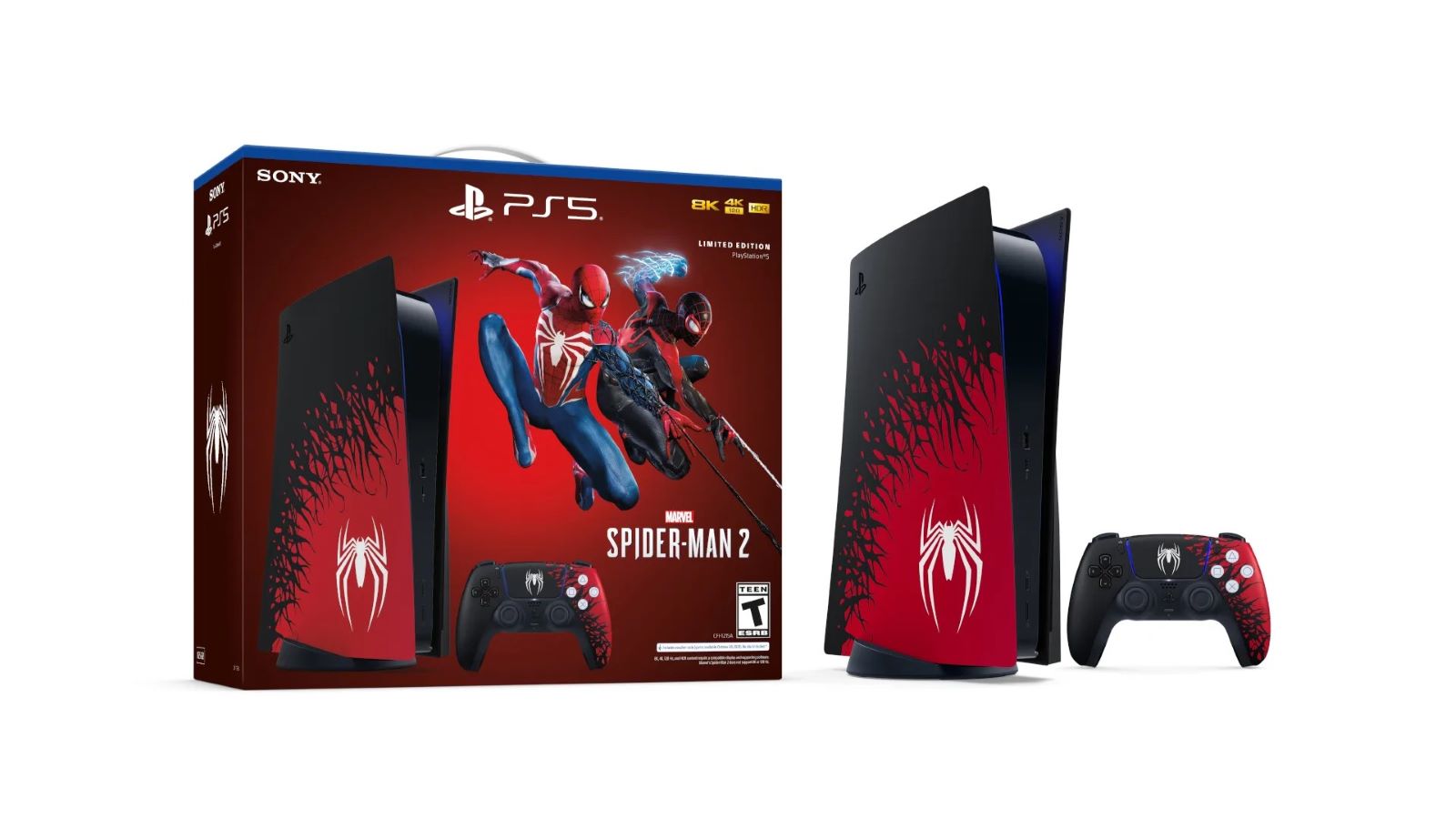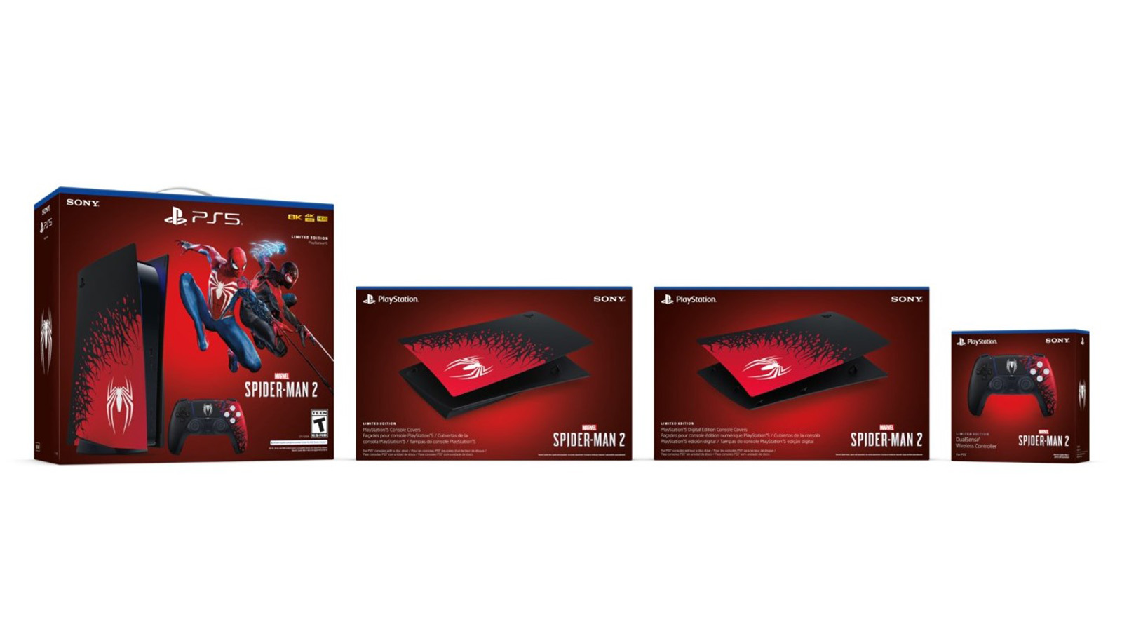 Nếu đã sở hữu PlayStation 5, các game thủ hoàn toàn có thể mua riêng các mặt hàng giới hạn này, bao gồm bộ vỏ bảo vệ PlayStation 5 Console Covers – Marvel Spider-Man 2 Limited Edition và tay cầm chơi game không dây DualSense wireless controller – Marvel’s Spider-Man 2 Limited Edition. Sony cung cấp đầy đủ vỏ bảo vệ cho cả hai phiên bản PlayStation 5: Disc drive edition (đĩa truyền thống) và Digital edition (kỹ thuật số).
