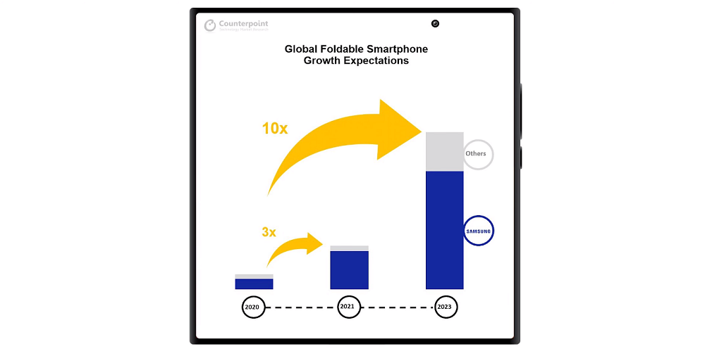 Anh em hãy nhìn vào số liệu dưới đây. Anh em có thể thấy, hiện tại thì số lượng điện thoại gập bán ra bán chưa nhiều, doanh số cũng không quá lớn nhưng phần lớn trong số đó đã thuộc về Samsung. Mình chắc chắn rằng, tương lai sắp tới đây, hãng nào cũng sẽ ra mắt cho mình những chiếc điện thoại gập kể cả Apple hay Google. Samsung ngay từ đầu đã nhận ra được “mảnh đất màu mỡ” này và hãng đang gần như độc chiếm nó trên thị trường. Đương nhiên hãng sẽ không muốn mất đi thị phần quá nhiều.