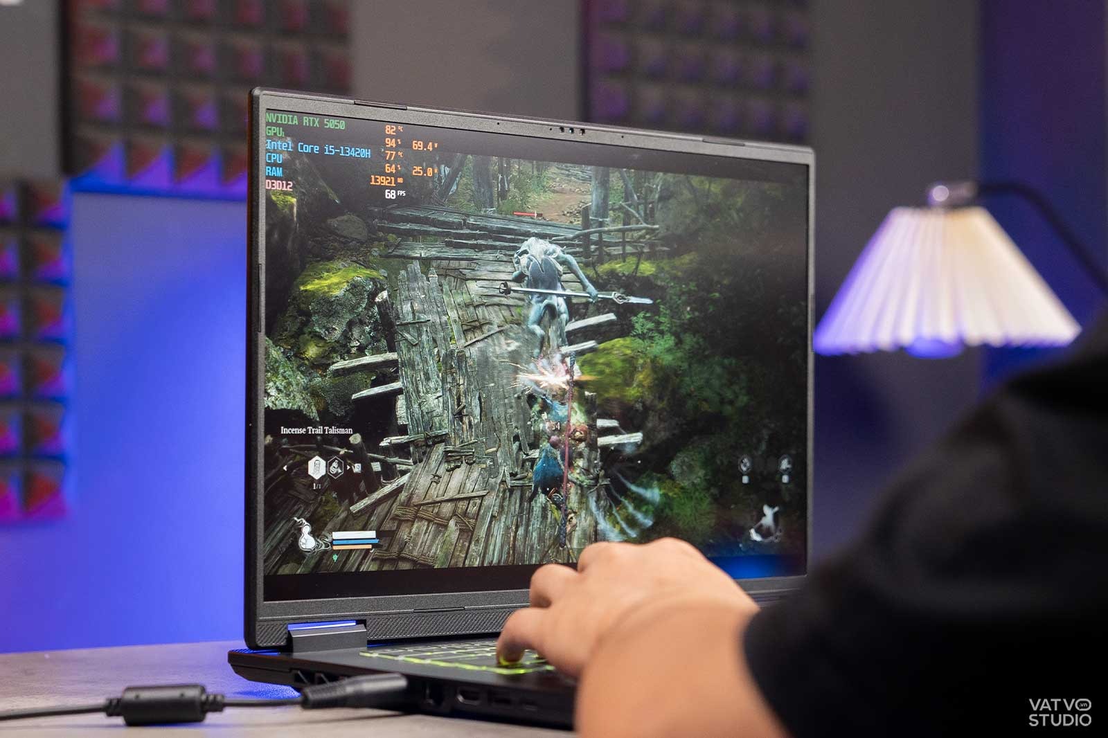 Các hiệu ứng ánh sáng, đổ bóng của Erdtree hay chi tiết trên bộ giáp của nhân vật được tái hiện sắc nét. Ngay cả khi cưỡi ngựa chiến đấu với những con trùm khổng lồ có nhiều hiệu ứng phép thuật, hiện tượng tụt khung hình (drop FPS) gần như không xảy ra, cho thấy khả năng tối ưu phần cứng rất tốt của RTX 5050.