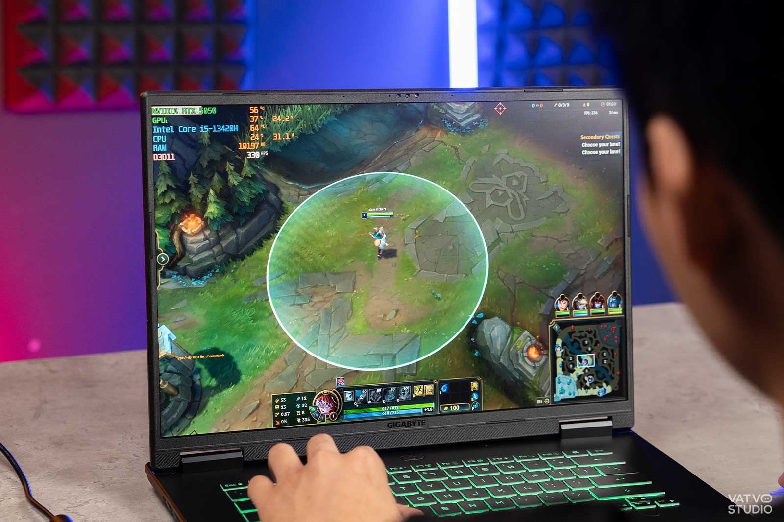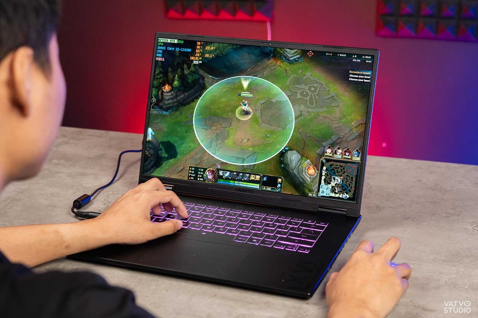 Trong bài viết dưới đây, mình sẽ sử dụng Gigabyte Gaming A16 với 4 tựa game khác nhau, từ game nhẹ như Liên Minh Huyền Thoại cho đến game AAA rất nặng như Cyberpunk 2077 hay Elden Ring. Bài thử nghiệm được thực hiện trong môi trường phòng studio, nhiệt độ khoảng 24 độ C.