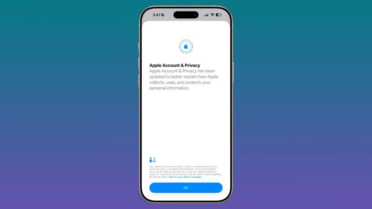 Khi truy cập Tài khoản Apple lần đầu sau khi cài đặt iOS 26.2, bạn sẽ thấy một thông báo mới. Thông báo này cho biết thông tin về quyền riêng tư của Apple đã được cập nhật để giải thích rõ ràng hơn về cách thức thông tin cá nhân của bạn được thu thập và sử dụng.