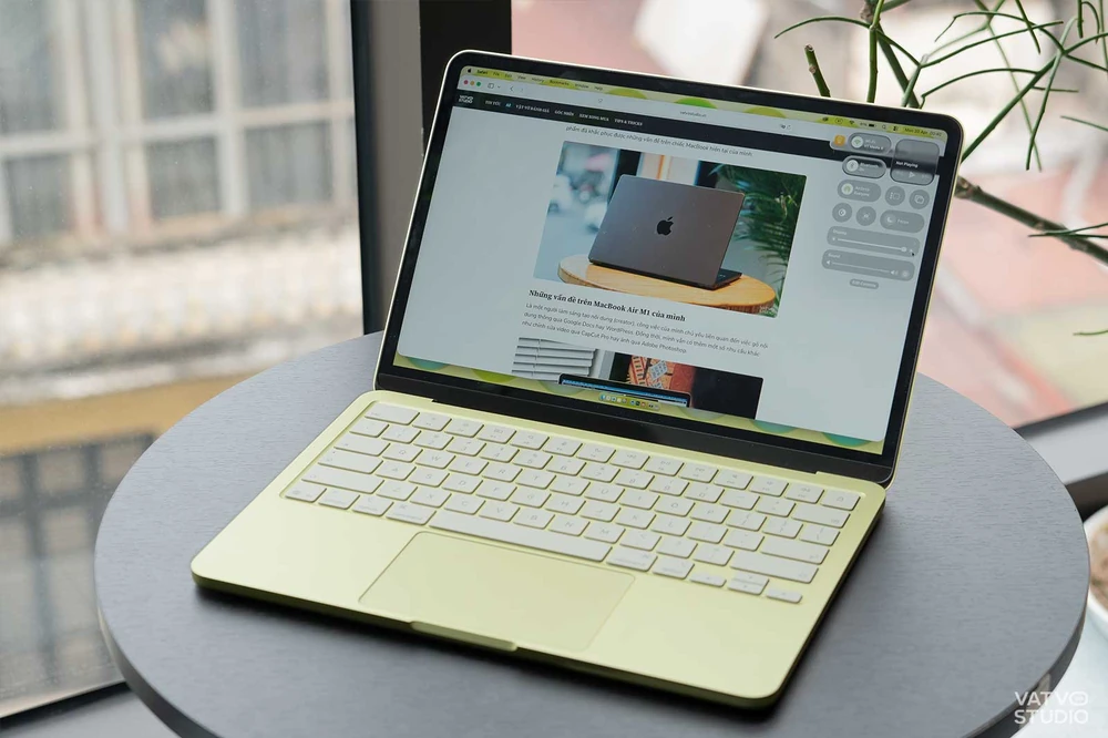Đây là con số ấn tượng đối với một mẫu laptop mỏng nhẹ khi phải gánh vác các ứng dụng tiêu tốn tài nguyên hệ thống thường xuyên. Trong quá trình sử dụng, mình không cảm thấy máy bị nóng lên nhiều ở vùng kê tay, chứng tỏ khả năng tối ưu hiệu năng của chip A18 Pro rất thông minh, ưu tiên sự ổn định và duy trì nhiệt độ ở mức hợp lý.