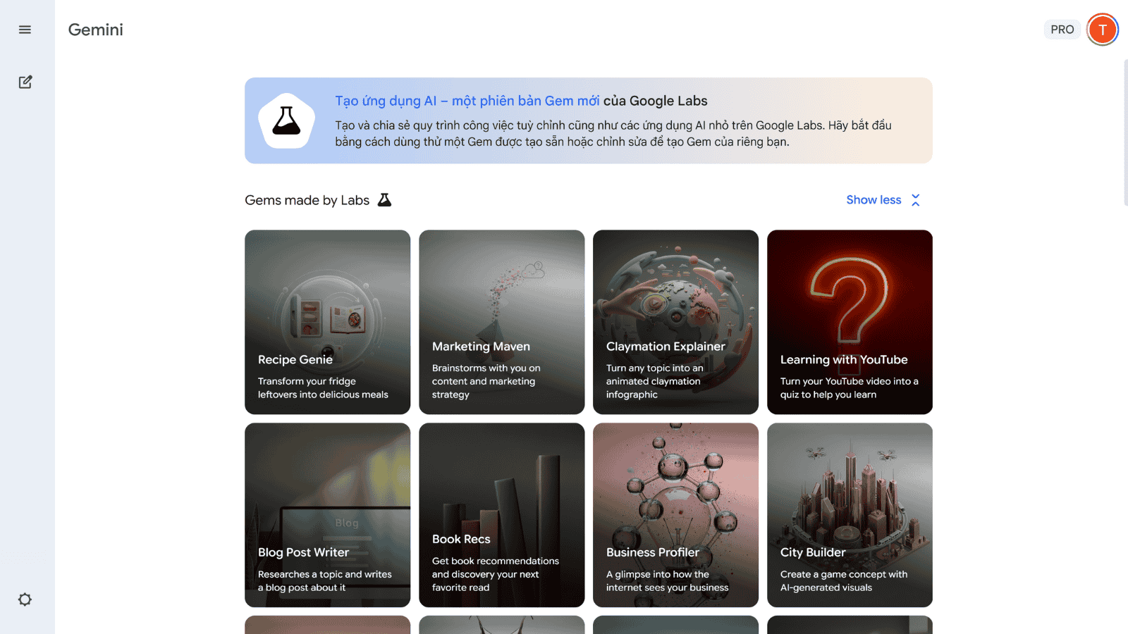 Phiên bản Gem ra mắt năm 2024 chủ yếu đóng vai trò như những chatbot chuyên về một lĩnh vực cụ thể, nhưng chỉ dừng lại ở việc đối thoại một chiều. Gem mới của Google Labs mang đến những cải tiến thực tế hơn: