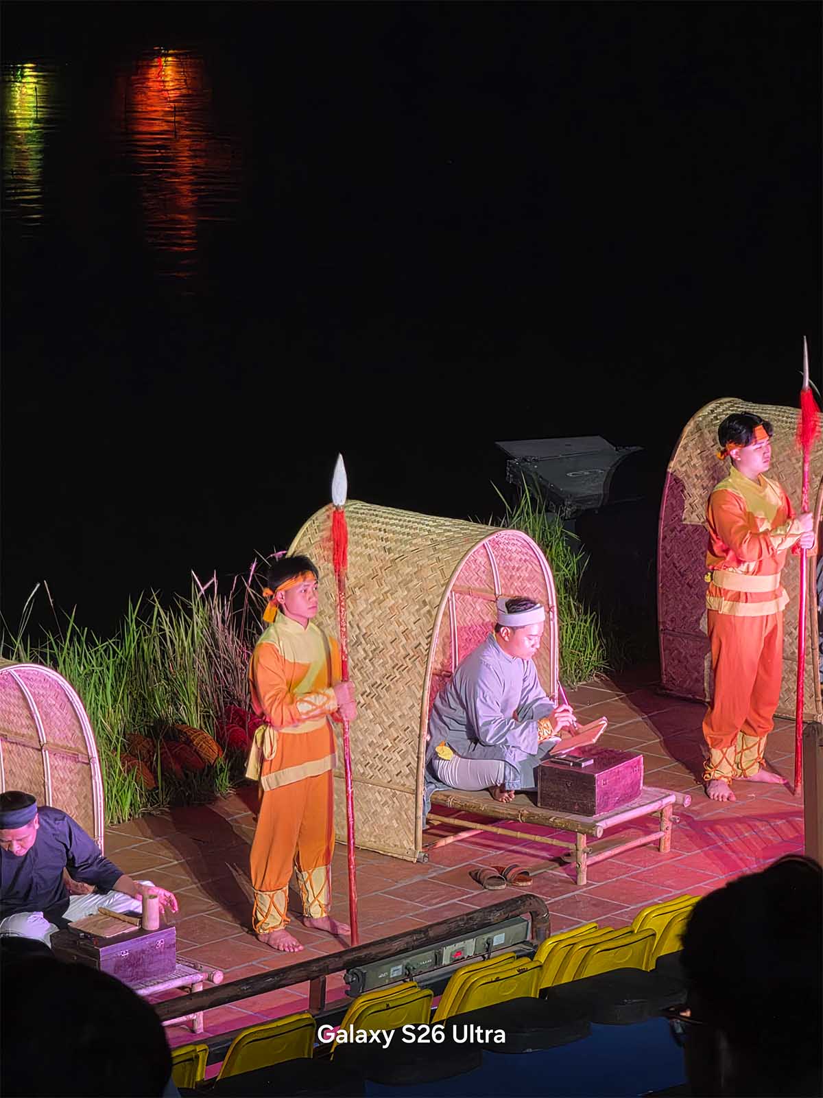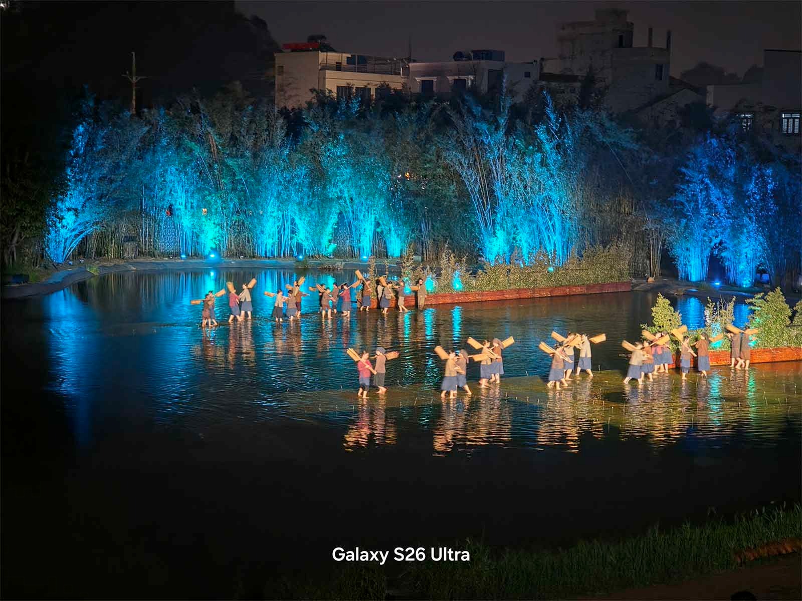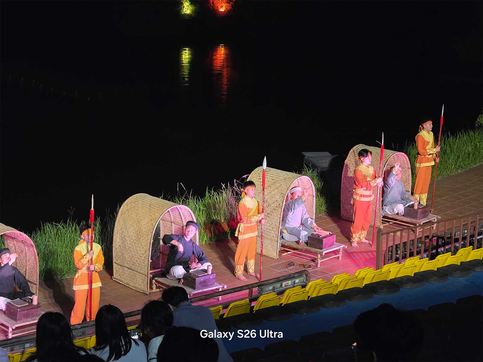 Bên cạnh các đêm nhạc sôi động, mình cũng đã mang S26 Ultra đi thưởng thức “Tinh Hoa Bắc Bộ” – một show thực diễn văn hóa rất nổi tiếng để kiểm chứng khả năng chụp đêm trong một điều kiện khác. Khác với sự hỗn loạn của ánh sáng concert, show diễn này có môi trường ánh sáng tĩnh lặng và thuận lợi hơn, không có đèn laser quét liên tục hay khói nhân tạo dày đặc. Trong bối cảnh này, năng lực thực sự của Galaxy S26 Ultra được phát huy tối đa, đúng với những gì người dùng kỳ vọng ở một thiết bị cao cấp.