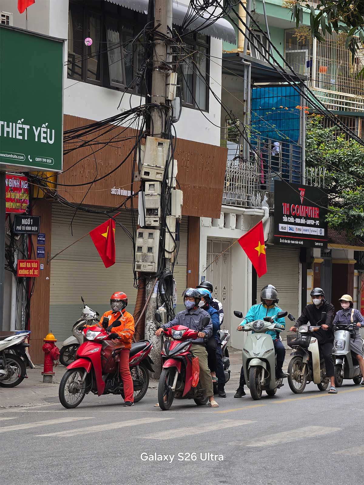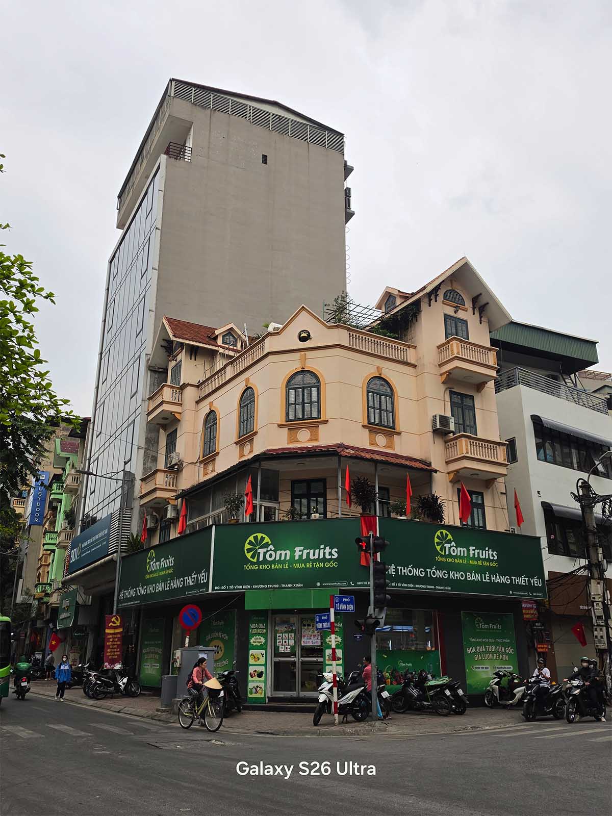 Khả năng chụp thu phóng trong điều kiện ban ngày vẫn được Galaxy S26 Ultra giữ phong độ. Ở mức 5X hay 10X, các đường nét kiến trúc của những tòa nhà cao tầng được tái tạo chuẩn chỉ, tách bạch và giữ được độ sắc nét ấn tượng. Trong những ngày bầu trời Hà Nội có một lớp sương mờ bao phủ, máy ghi nhận lại đúng không khí thực tế đó, không lạm dụng thuật toán làm nét (over-sharpening) để cố gắng làm bức ảnh trông trong vắt như có 1 lớp filter.
