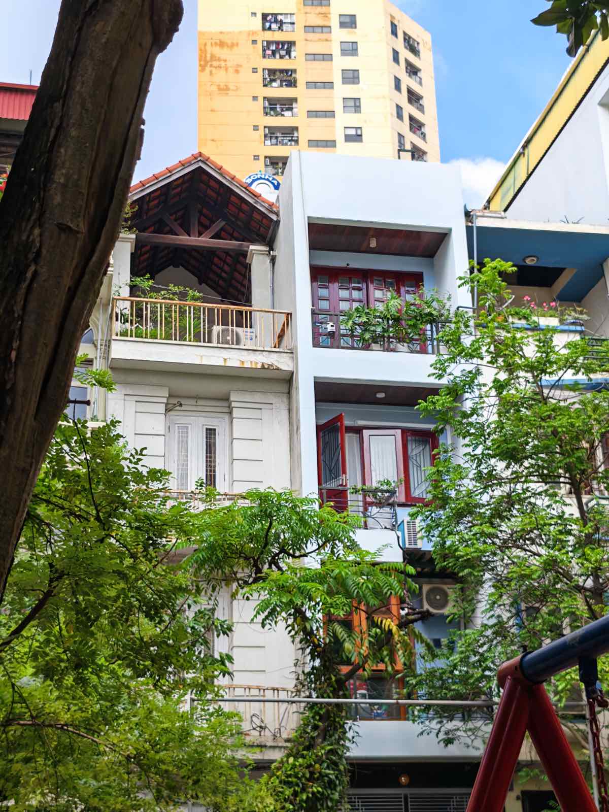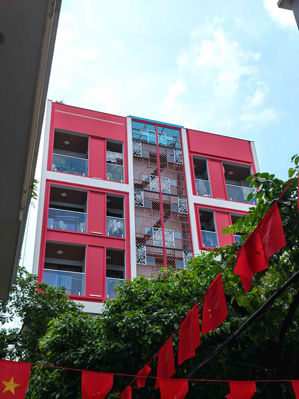 Ở các điều kiện chụp phức tạp hơn một chút, chẳng hạn như chụp ngược sáng (HDR), mình có thử chụp một tòa nhà màu đỏ với phần nền trời phía sau rất sáng. HONOR Magic V5 xử lý HDR ở mức ổn.