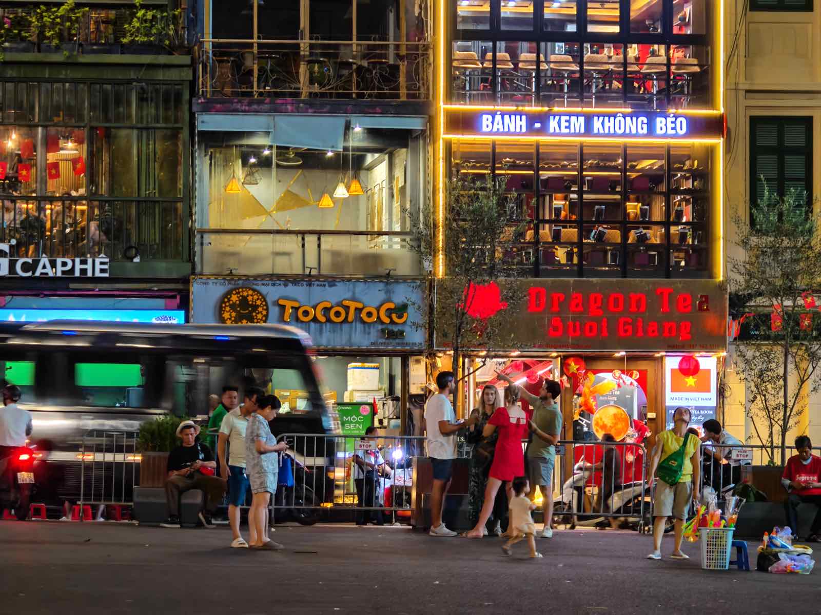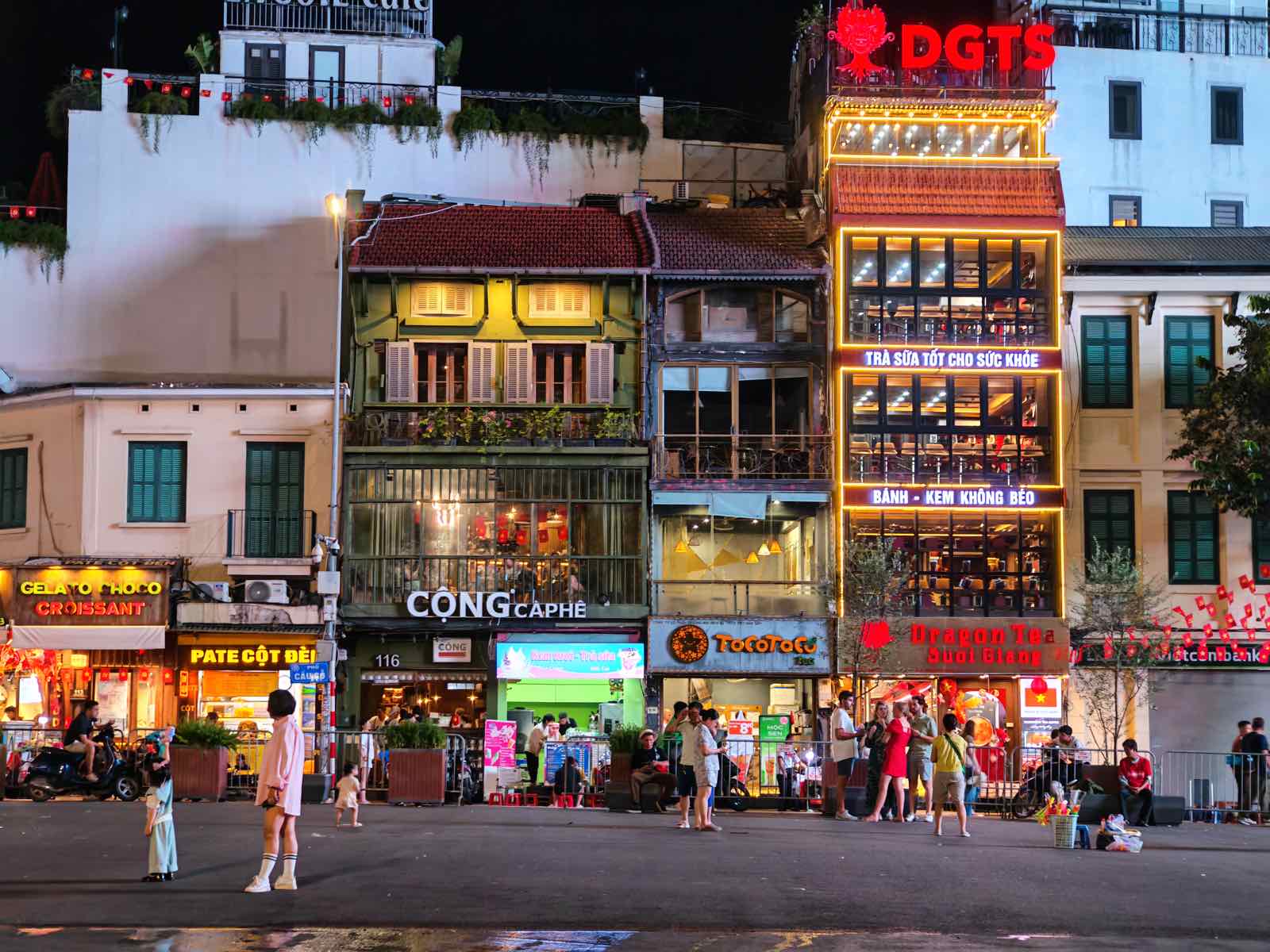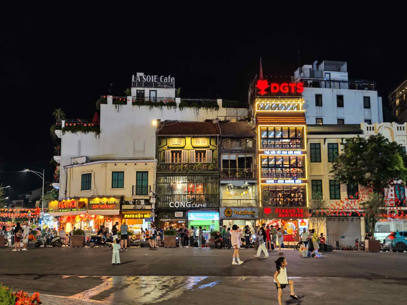 Mình có chụp một góc của quảng trường Đông Kinh Nghĩa Thục, một khu vực rất phức tạp về ánh sáng với nhiều biển hiệu đèn LED. Ở mức zoom cơ bản là 1X hay 2X, máy đều xử lý rất tốt rồi.