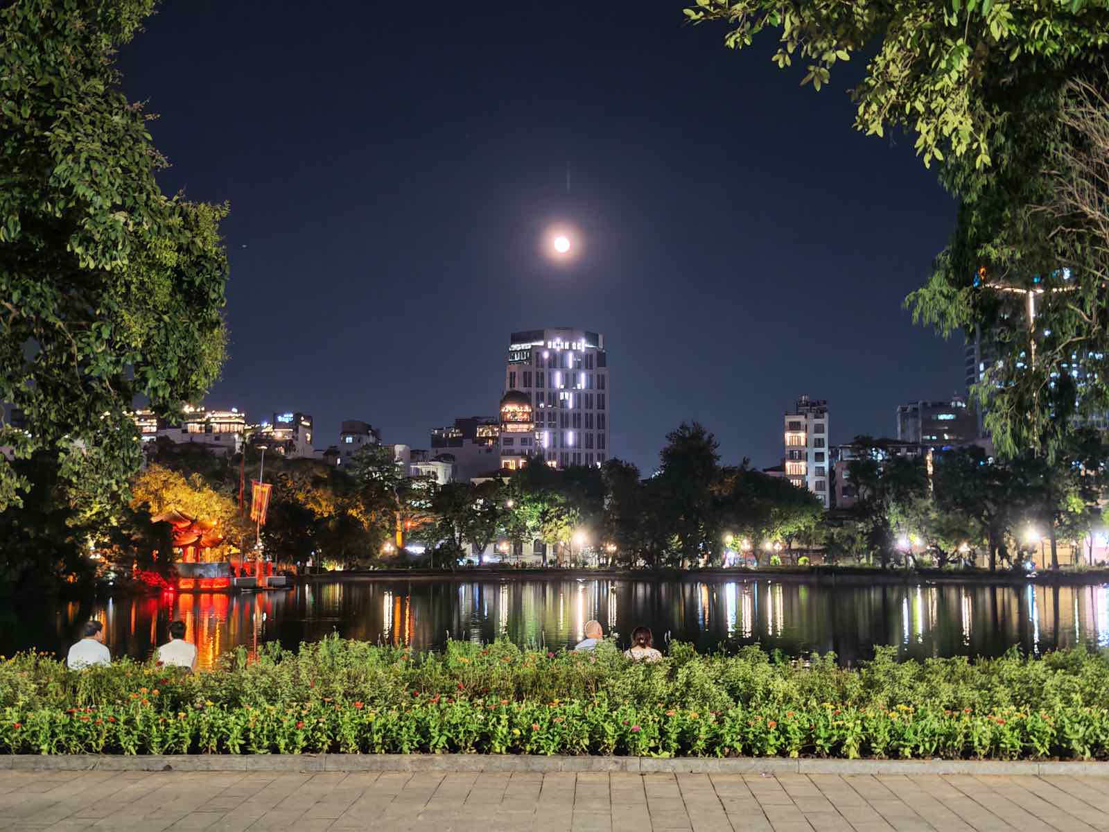 Mình có thử chụp một số bức ảnh trên Magic V5 tại khu vực Hồ Hoàn Kiếm (Hà Nội) vào buổi tối. Chất lượng ảnh đêm của máy vẫn đi theo thiên hướng là đẩy mạnh về độ tương phản và độ bão hòa màu sắc.