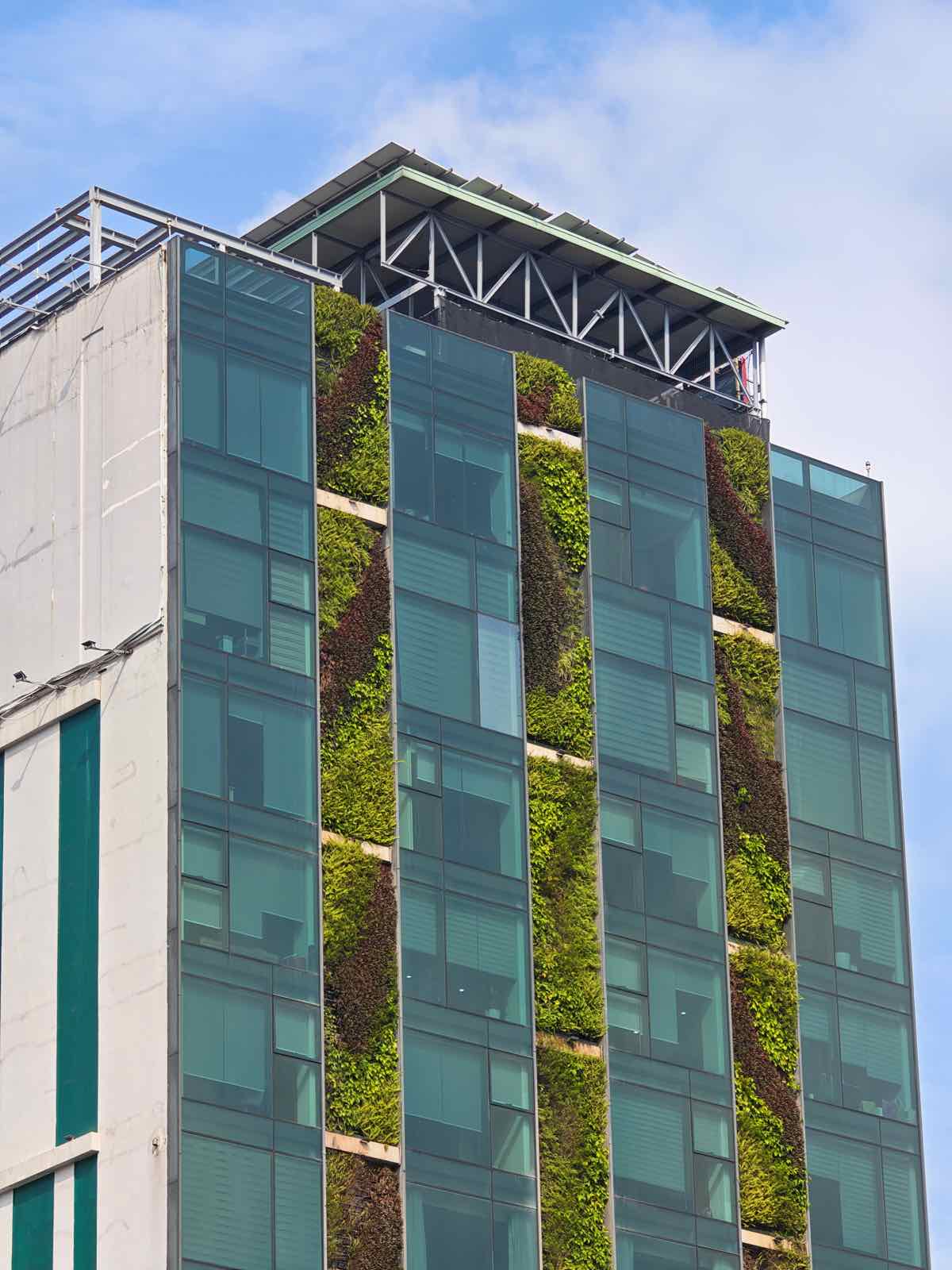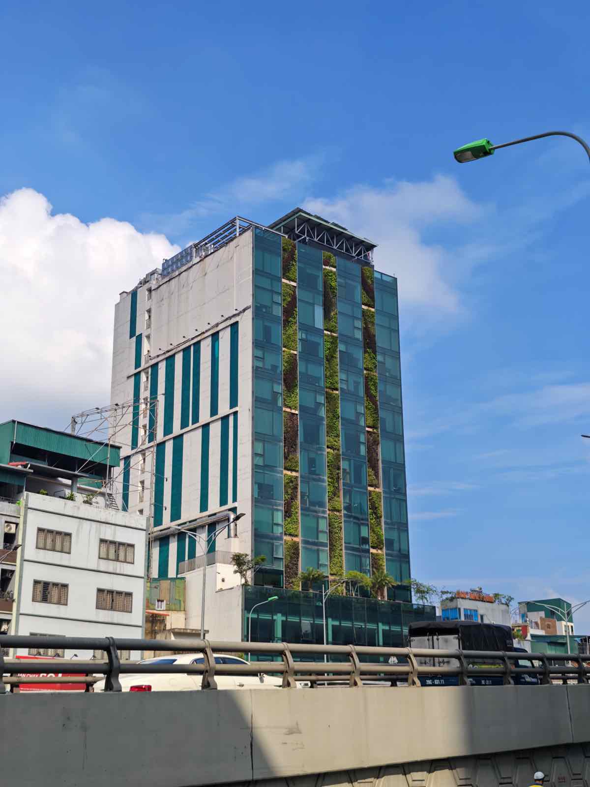 Với bức ảnh mình chụp một tòa nhà ở ngay đầu đường Trường Chinh, một công trình có kiến trúc khá phức tạp với rất nhiều ban công trồng cây xanh. Ở mức zoom 3X, máy đều tái tạo được mật độ chi tiết rất cao. Khi zoom kỹ vào ảnh, mình vẫn có thể thấy rõ các hàng cây cối màu sắc khác nhau, được trồng xen kẽ trên khắp các tầng.