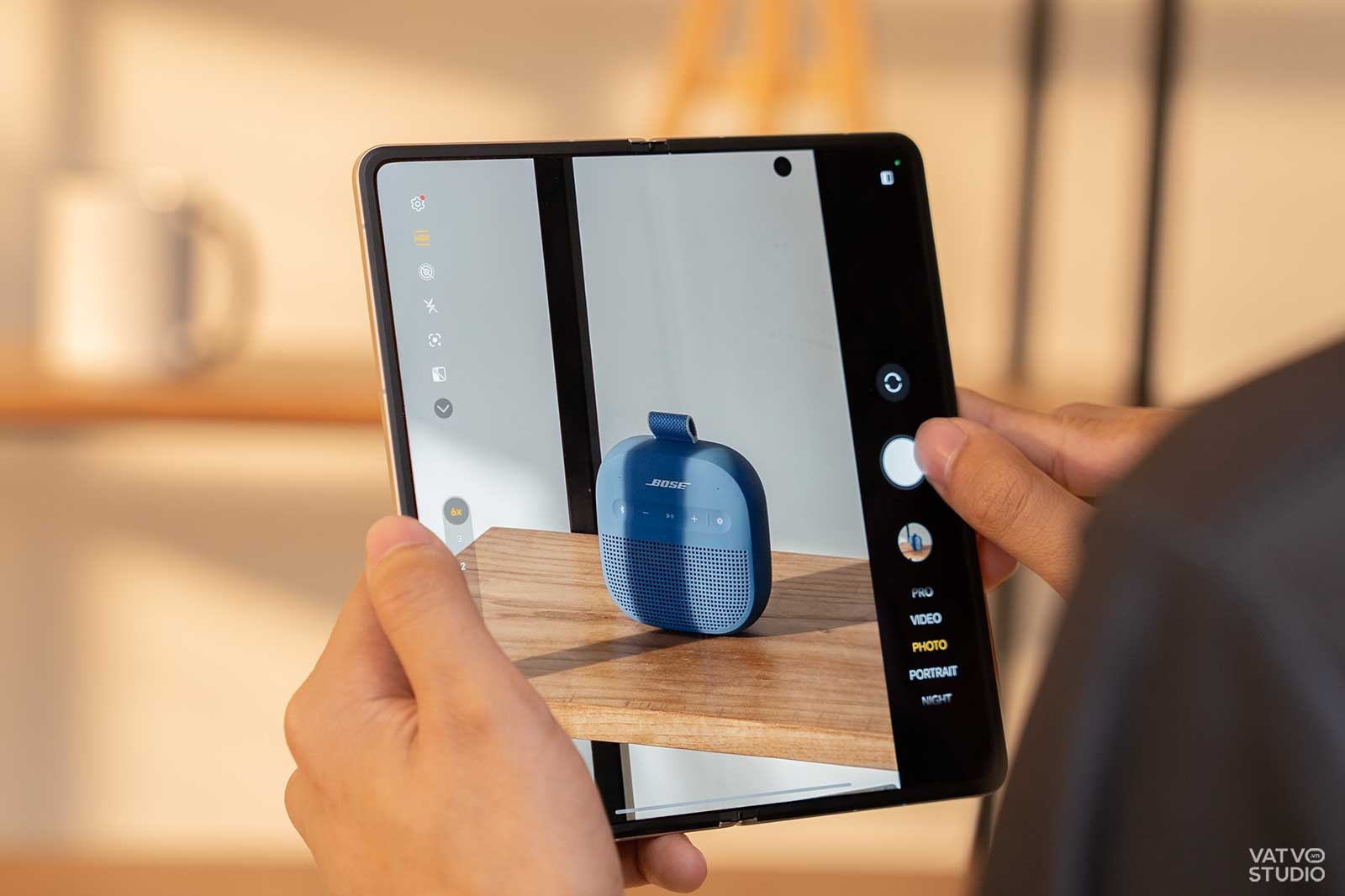 Camera telephoto 64MP không chỉ hữu dụng khi zoom xa, mà còn phát huy lợi ích rất lớn khi người dùng chuyển sang chế độ chụp Chân dung. Trên HONOR Magic V5, ở chế độ Chân dung, máy cung cấp cho chúng ta hai công tắc zoom nhanh là 3X và 6X, tận dụng tối đa sức mạnh của ống kính tele.