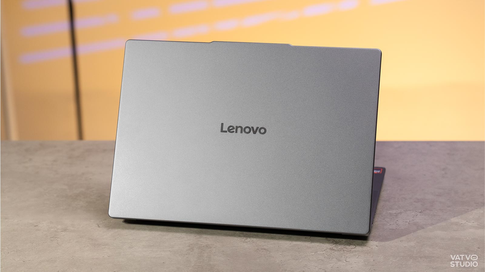 Toàn bộ vỏ máy được hoàn thiện từ chất liệu nhôm, mang lại cảm giác cao cấp và mát tay khi tiếp xúc. Tuy nhiên, một điểm trừ đáng tiếc trong quá trình hoàn thiện là phần vỏ kim loại này có cảm giác hơi mỏng. Khi dùng tay nhấn nhẹ, cả phần nắp máy (mặt A) và khu vực bàn phím (mặt C) đều xuất hiện hiện tượng flex khá rõ ràng. Đối với một chiếc laptop 14 inch nhỏ gọn như Lenovo IdeaPad Slim 5 OLED, người dùng thường kỳ vọng một sự chắc chắn và cứng cáp hơn.